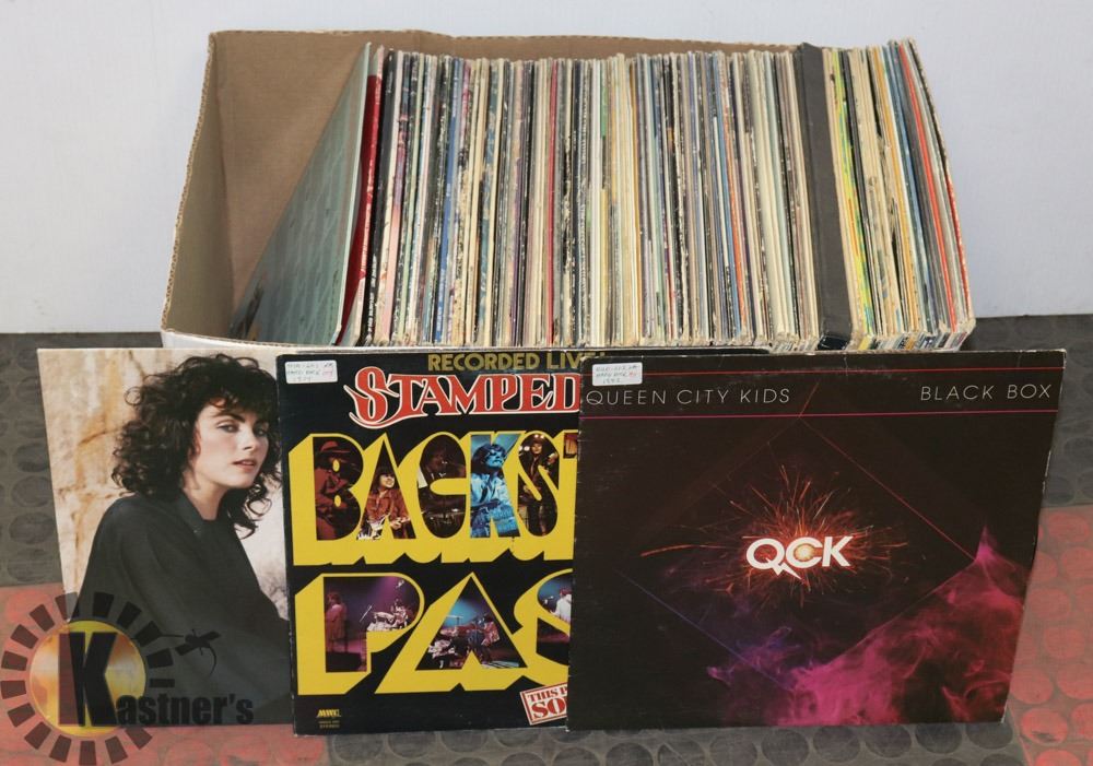 BOX W/ ROCK MUSIC VINYL RECORDS