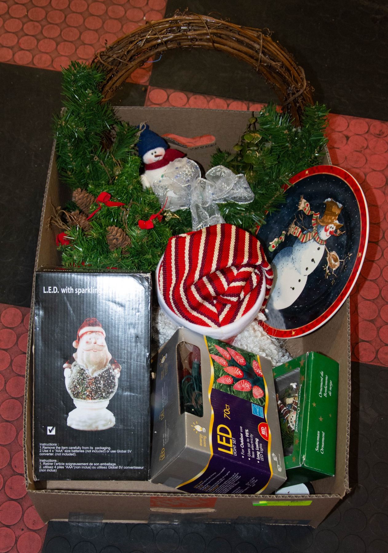 MOVING WATER SANTA, "SANTA HEAD" GIFT BOX, SNOWMAN WREATH & SNOWMAN DECORATIVE PLATE, BOX OF 70 OUTDOOR LED LIGHTS - RED, ETC. **ALL ITEMS MUST BE REMOVED BY 5PM SATURDAY, DECEMBER 9TH 2023. ALL REMAINING ITEMS WILL BE SUBJECT TO A $6.00 PER DAY STORAGE CHARGE. ANY ITEMS REMAINING AFTER THURSDAY, DECEMBER 21ST 2023 WILL BE CONSIDERED FORFEITED. NO REFUNDS WILL BE ISSUED FOR FORFEITED ITEMS. TO SCHEDULE A PICK UP APPOINTMENT CLICK HERE