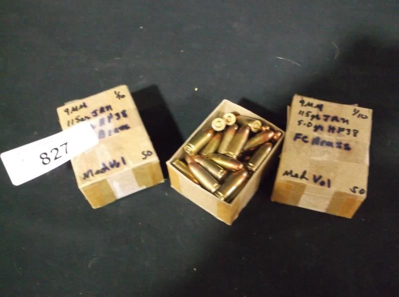 BOXES: 9MM 115 GR 5.0 GR HOLLOW POINT, 50 COUNT, QTY=2X THE MONEY