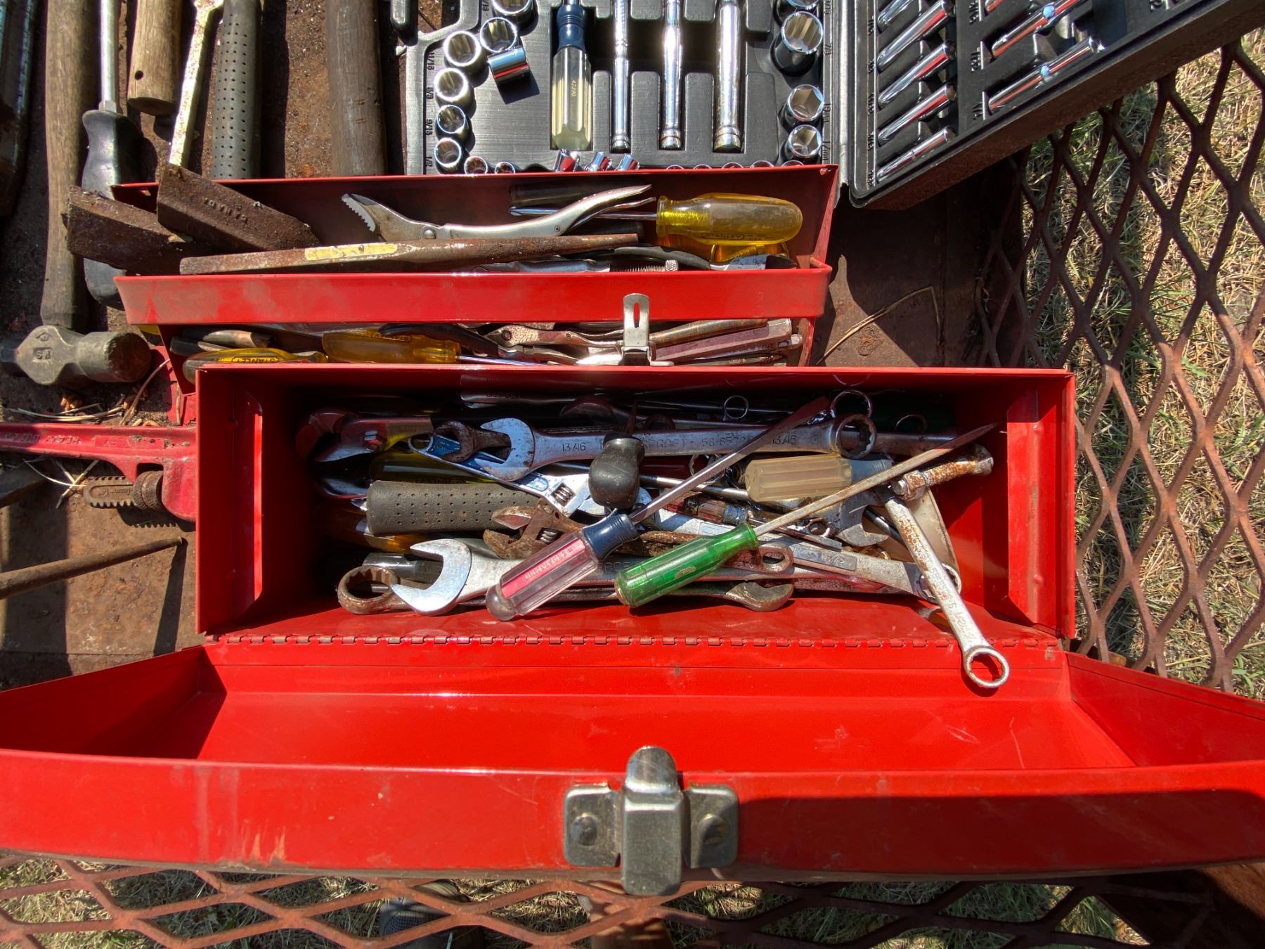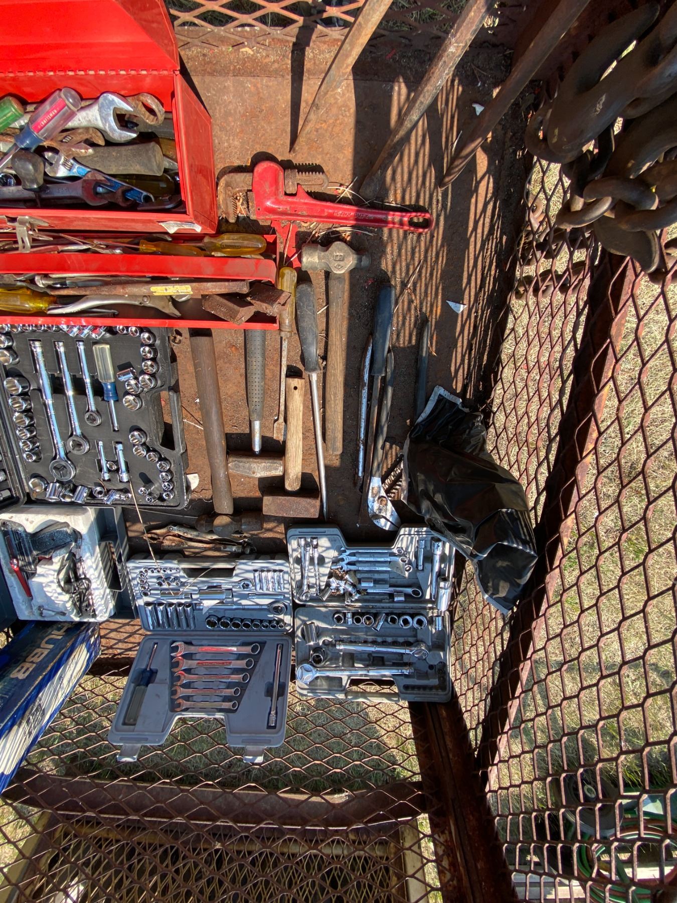 BP Steel Crate c/w all tools and chain
