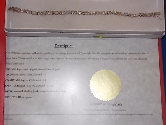 BRACELET - 6.84 CTW (12) OVAL FACETED WHITE TOPAZ & ROUND FACETED DIAMOND IN STERLING SILVER INFINITY LINK DESIGNED SETTING - INCLUDES CERTIFICATE $400