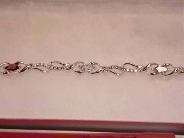 BRACELET - 6 MARQUIS FACETED MULTI GEMSTONES & DIAMOND IN STERLING SILVER SETTING - RETAIL ESTIMATE $375