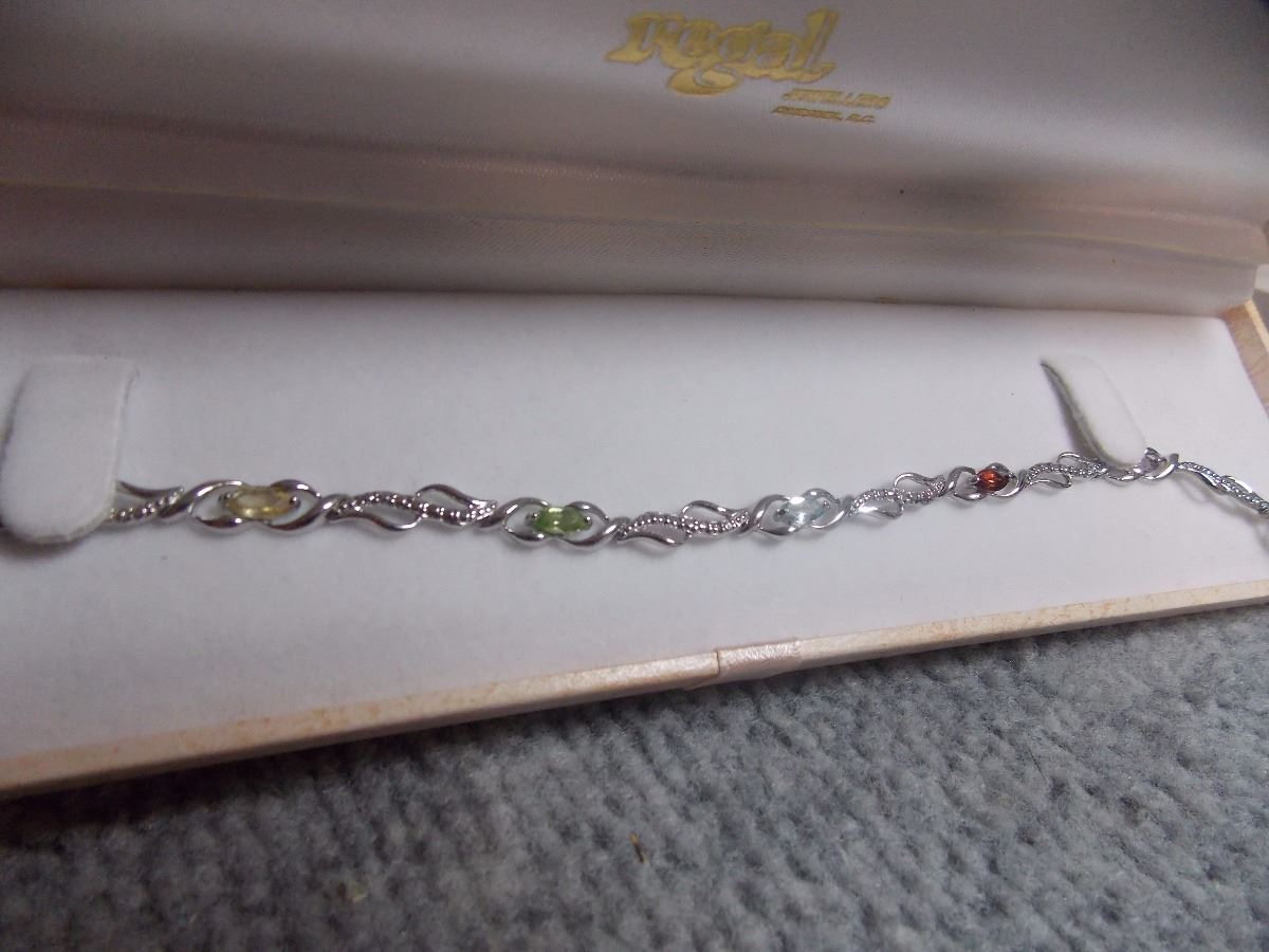 BRACELET - 6 OVAL FACETTED MULTI GEMSTONES & DIAMOND IN STERLING SILVER SETTING - RETAIL ESTIMATE $400
