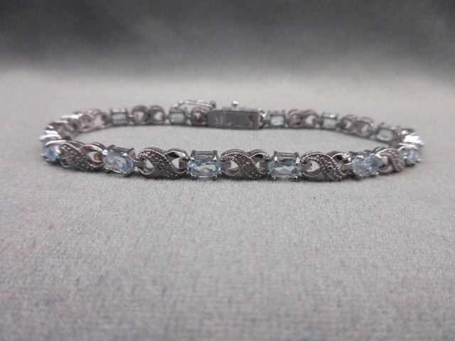 BRACELET - 6CTW OVAL FACETED BLUE TOPAZ (12) & DIAMOND IN STERLING SILVER CROSS OVER DESIGNED SETTING - INCLUDES CERTIFICATE $450