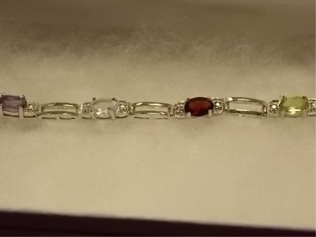 BRACELET - MULTI-GEMSTNE & DIAMOND IN STERLING SILVER WITH SCALLOP BOX DESIGNED LINKS - INCLUDES CERTIFICATE $450