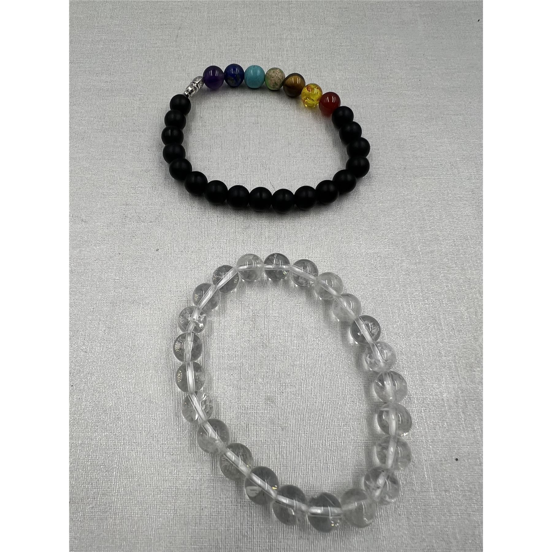 BRAND NEW CLEAR QUARTZ AND CHAKRA BRACELET 8MM .