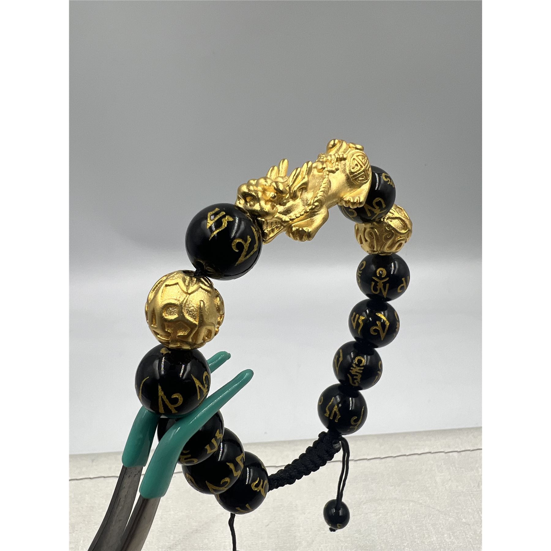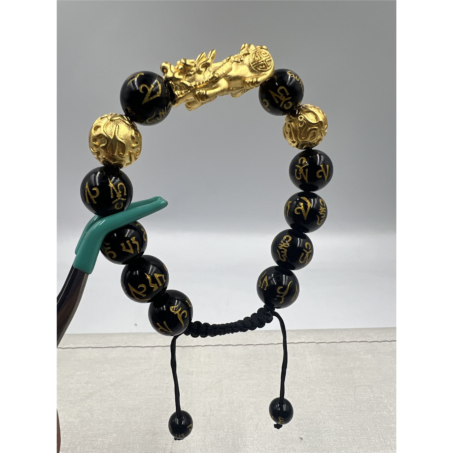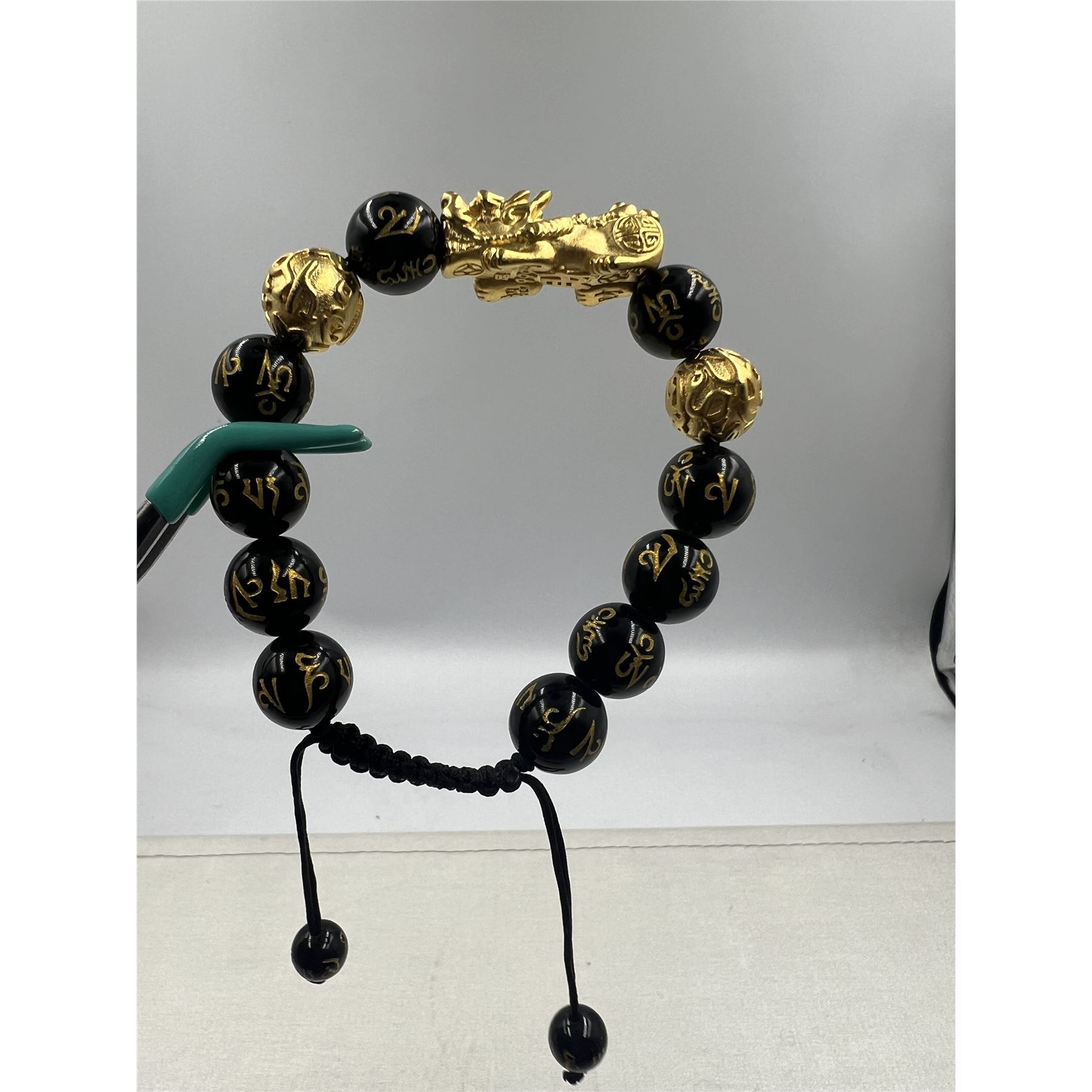 BRAND NEW FENG SHUI BLACK OBSIDISN WITH SAGIN PIXIU BRACELET WITH STRING