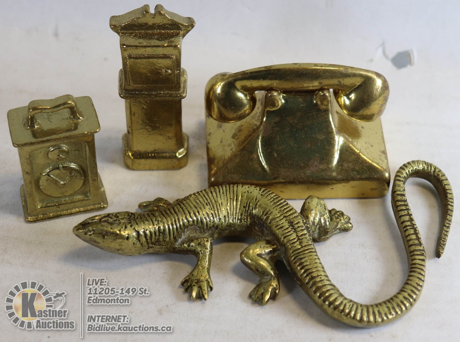 BRASS ITEMS 2 X CLOCKS PHONE LIZARD