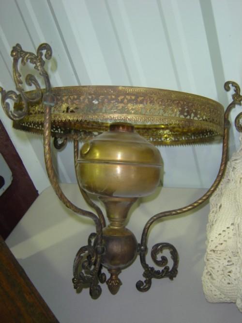 BRASS OIL BRACKET FOR HANGING LAMP; NO SHADE; HOLDS 14 INCH SHADE