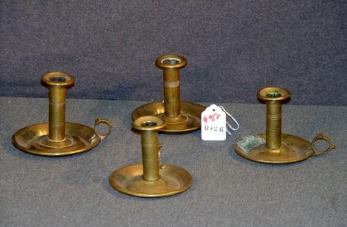 BRASS SAUCER BASED CANDLESTICKS- 4 X THE MONEY
