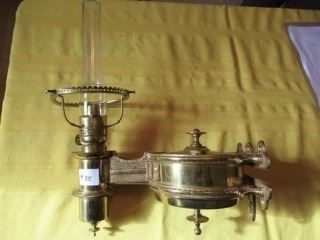 BRASS WALL MOUNT OIL LAMP WITH CHIMNEY