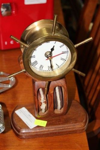 BRASS & WOOD SHIP WHEEL CLOCK