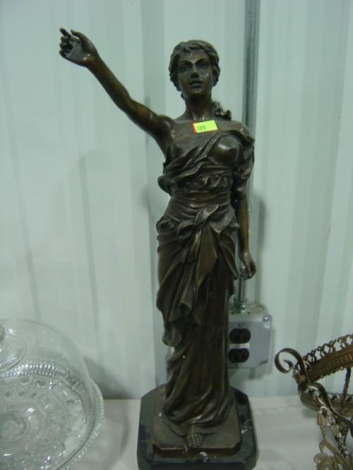 BRONZE LADY STATUE WITH MARBLE BASE; HAS CHIPS ON BOTTOM 24 INCHES TALL