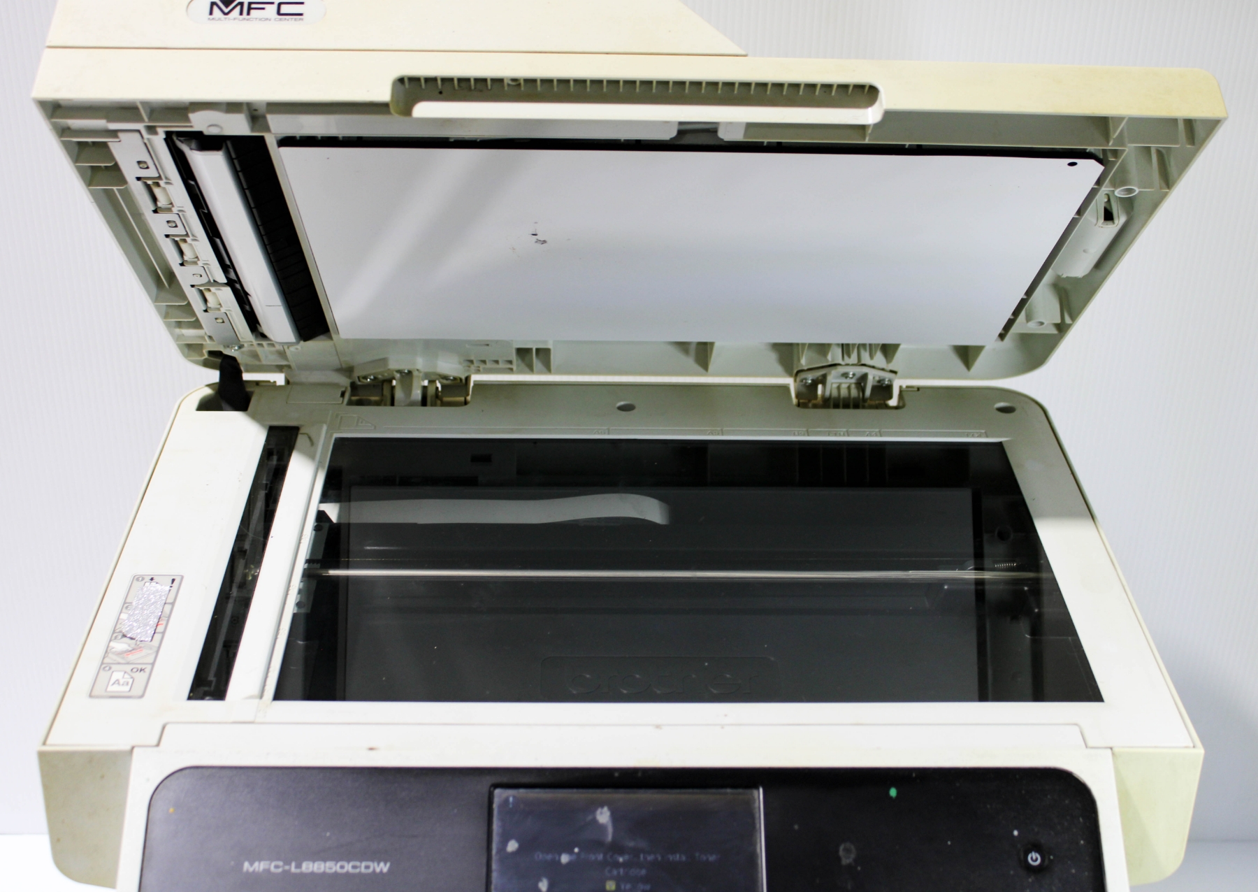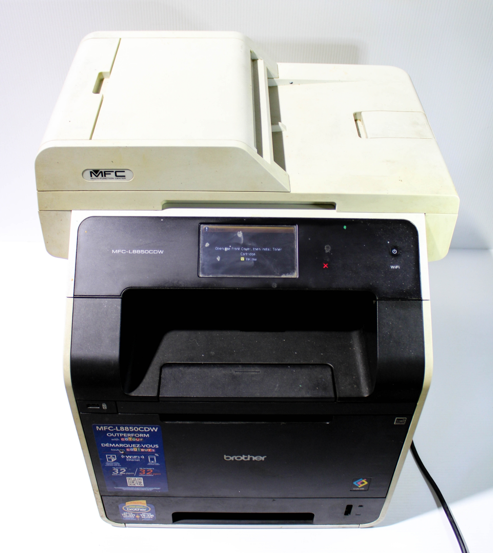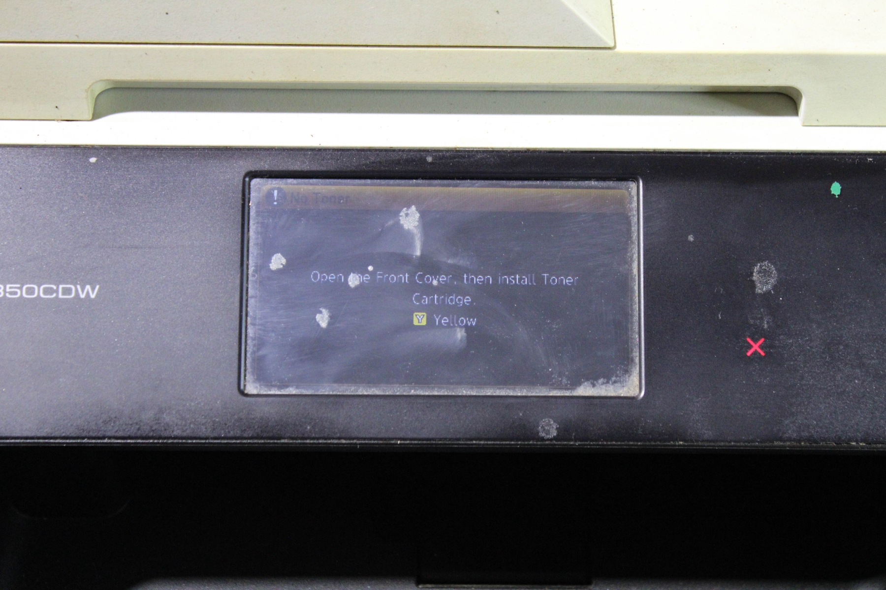TURNS ON, PRINTING UNTESTED AS IT'S LOW ON TONER.