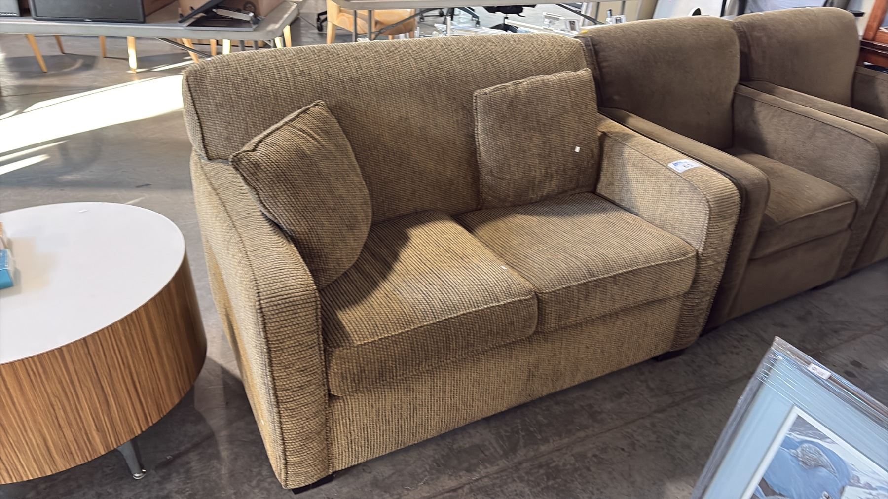 BROWN 2 SEAT SOFA 36"H X 56"W X 40"D