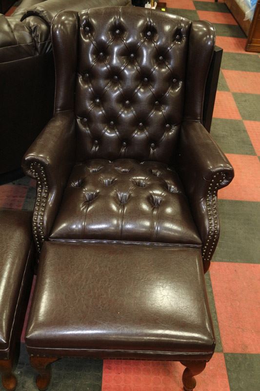 BROWN LEATHERETTE WING BACK PARLOUR CHAIR W