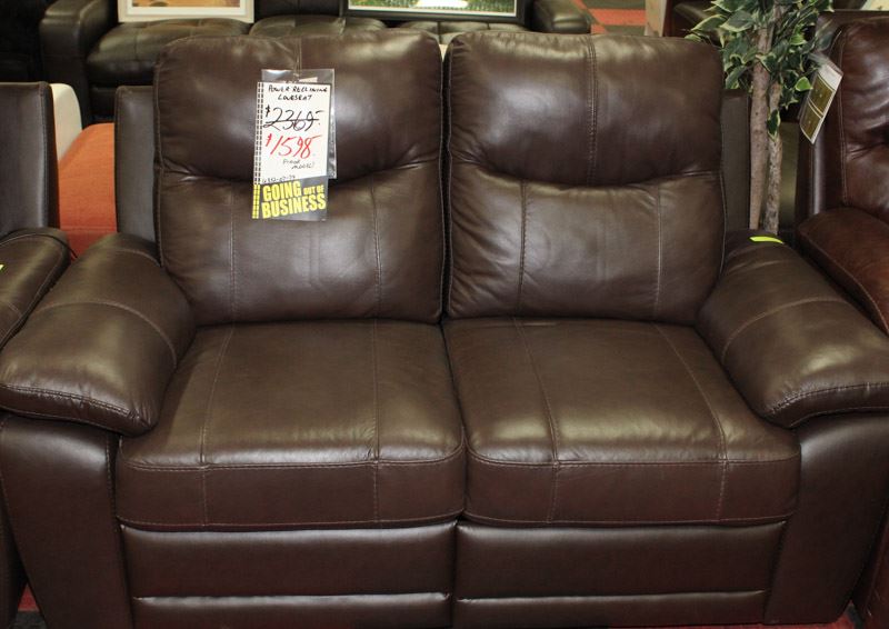 BROWN POWER RECLINING LEATHERETTE LOVE SEAT