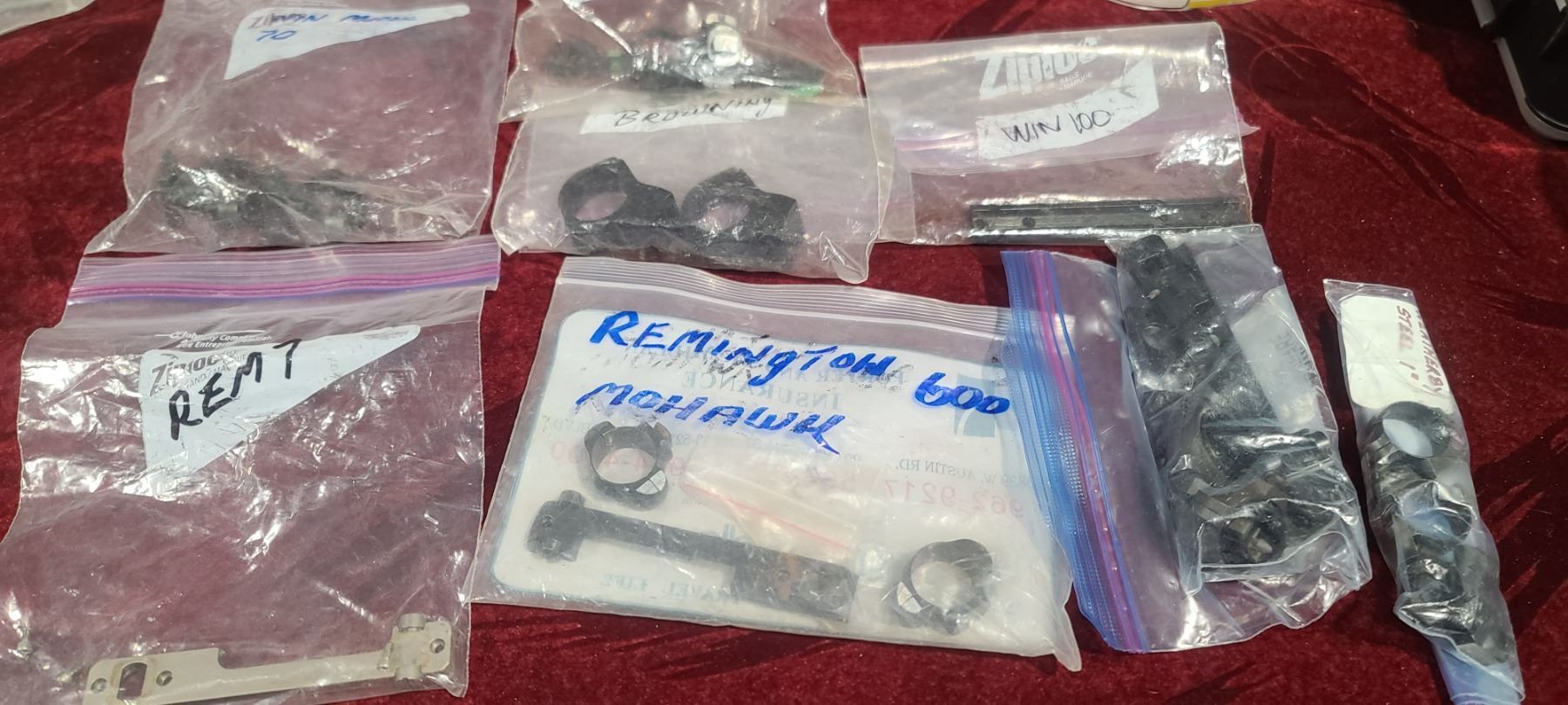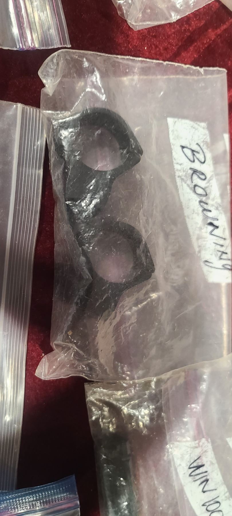 BROWNING BAR E AND TWO OTHER BROWNING SCOPE RINGS AND BASES, REM 7 BASE, REM 600 MOHAWK RING AND BASE, REM 70 RINGS, AND WINCHESTER 100 BASE