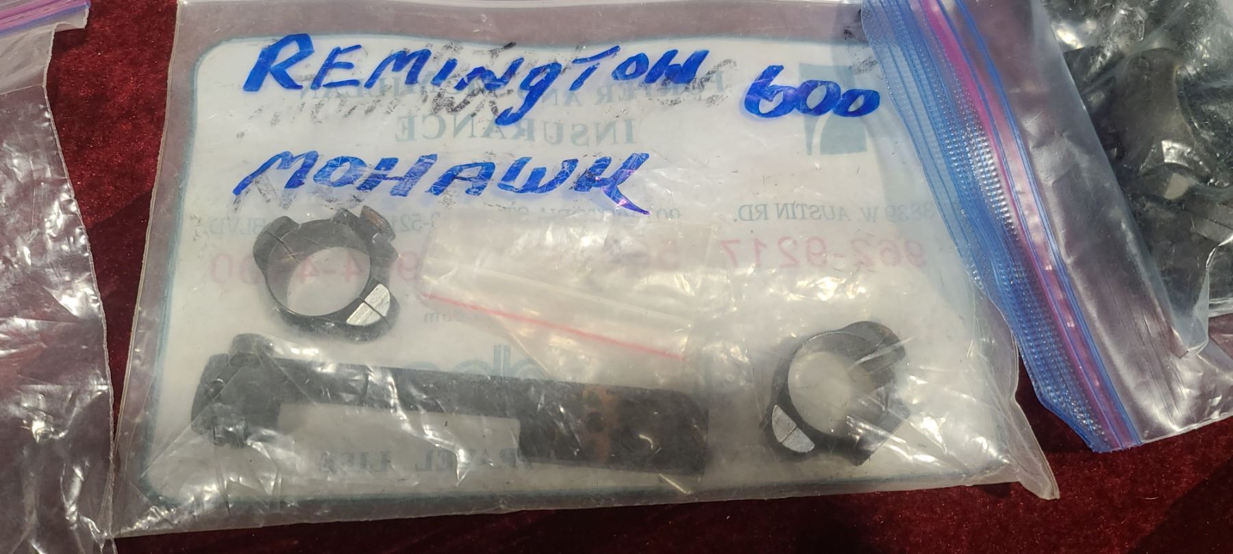 BROWNING BAR E AND TWO OTHER BROWNING SCOPE RINGS AND BASES, REM 7 BASE, REM 600 MOHAWK RING AND BAS