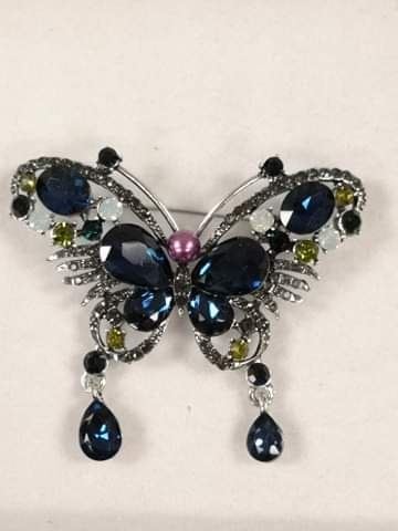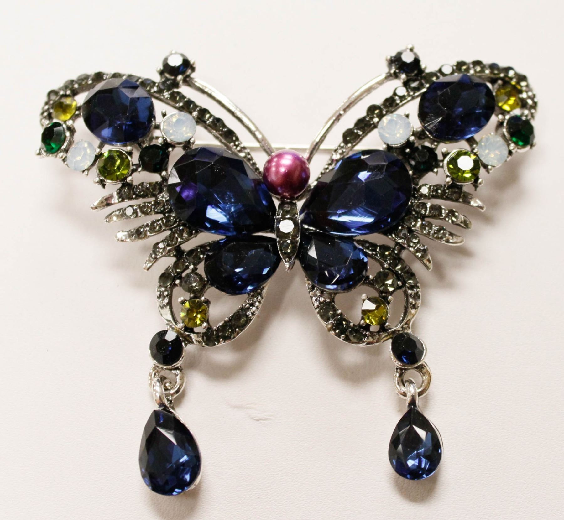 BUTTERFLY RHINESTONE BROOCH WITH DANGLY TAILS