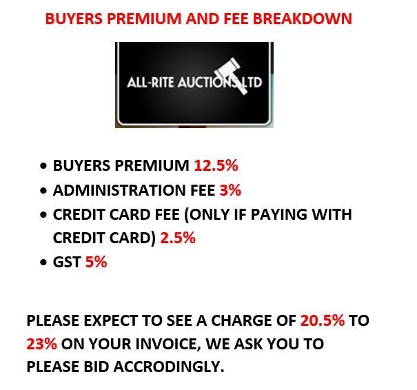 AD is subject to changes. SALE is Subject to GST, 3% internet fee & 12.5% Buyers Premium to a maximum of $1000 per lot.
