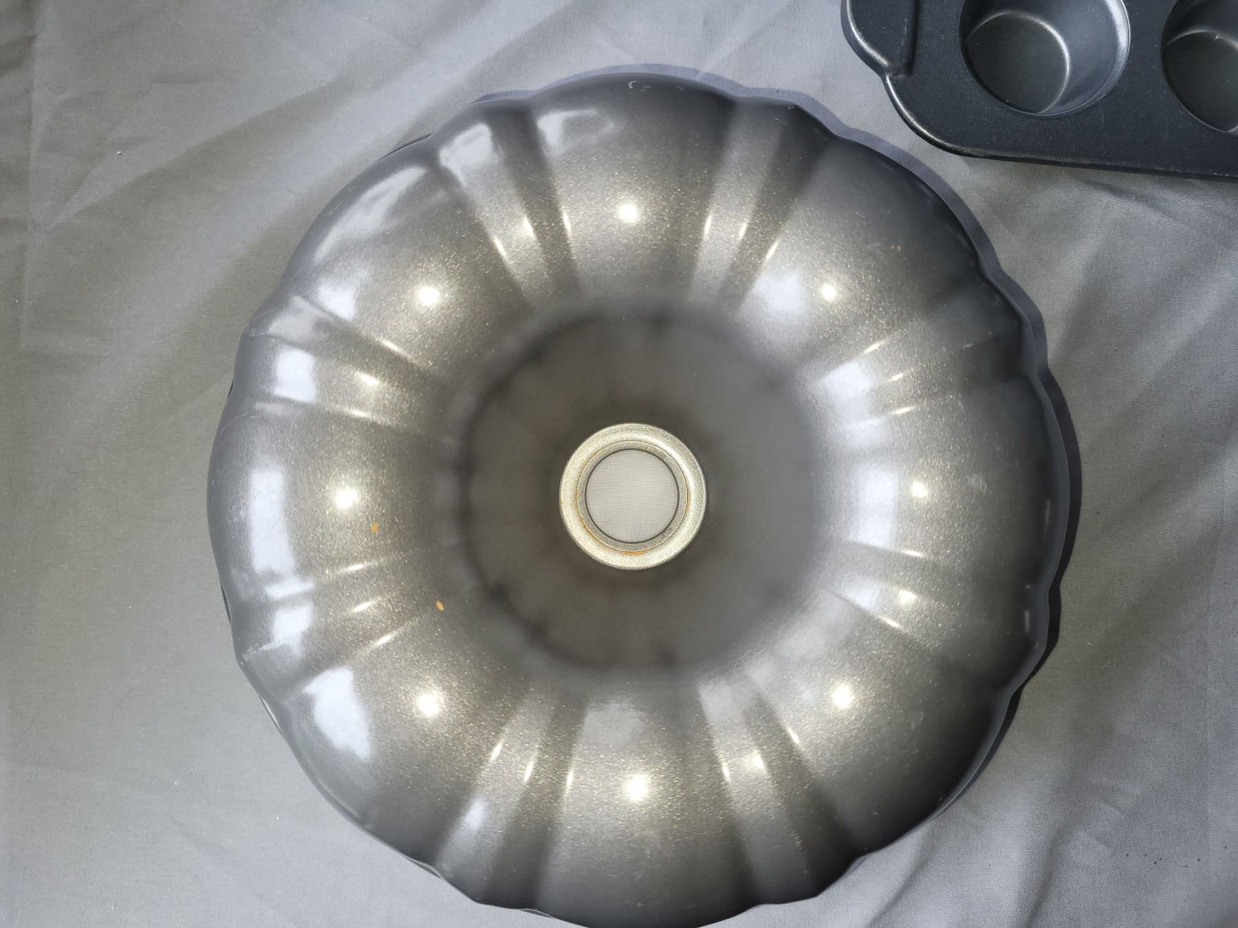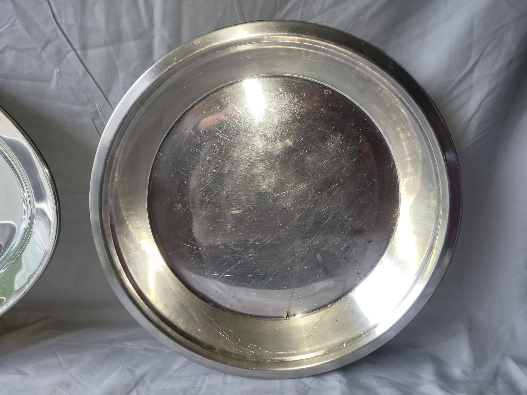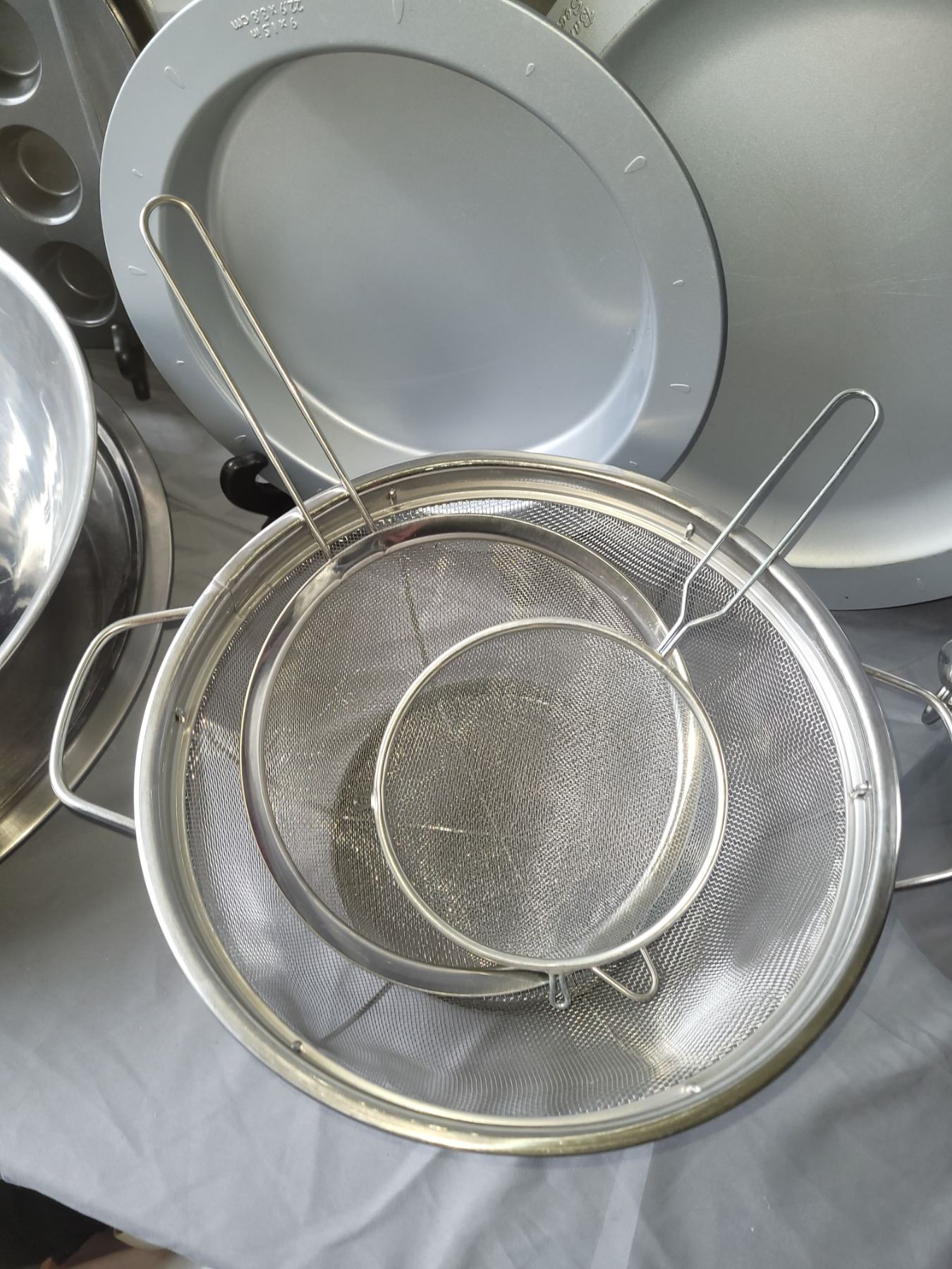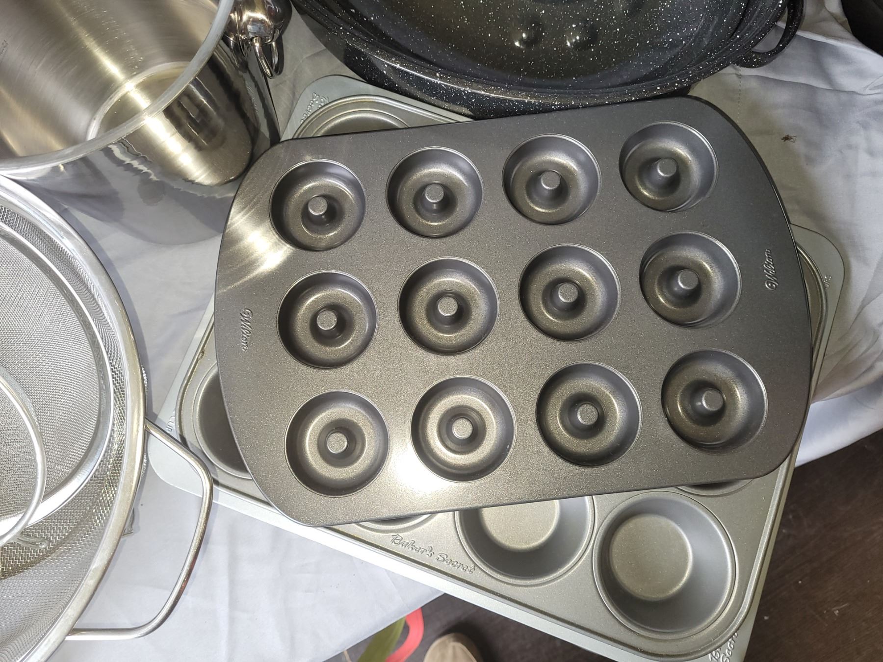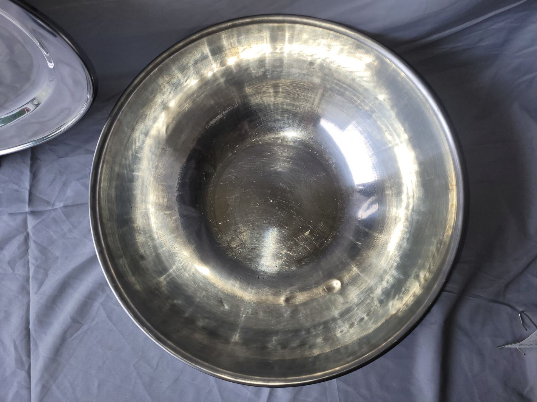 Bakers secrete, muffin tins, granite lidded roaster, 21" oval metal platter, large steel bowl, wine bucket and more. Pickup at 10 am