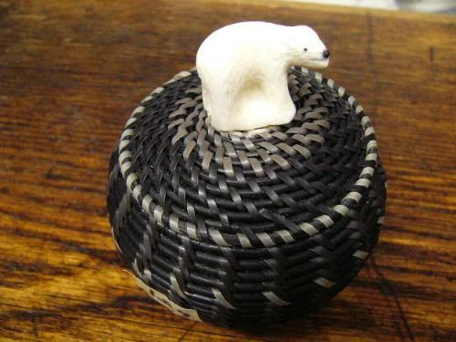 Baleen Basket 3 1/2" with carved Polar Bear (170F)