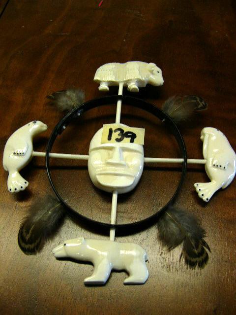 Baleen and Ivory mask with Musk ox Seal Bear and Man by Robert Kokuluk (1)
