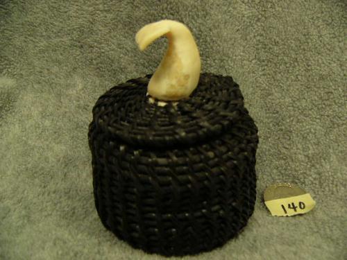 Baleen basket with ivory whale tale finial, 581f- approx. 3-7/8" tall, 3" diameter at base