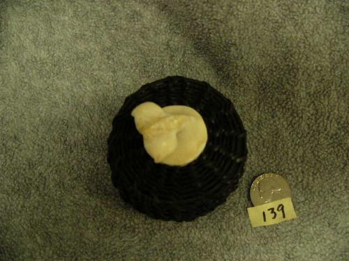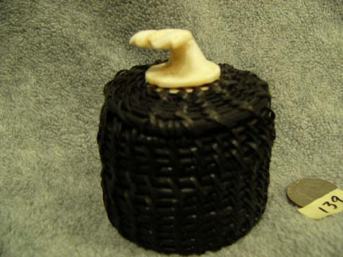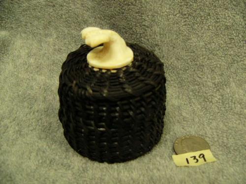 Baleen basket with ivory whale tale finial, 582f- approx. 3" tall