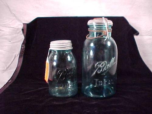 Ball 2 qt. canning jar, glass clamping lid, 1 qt. canning jar, metal lid
