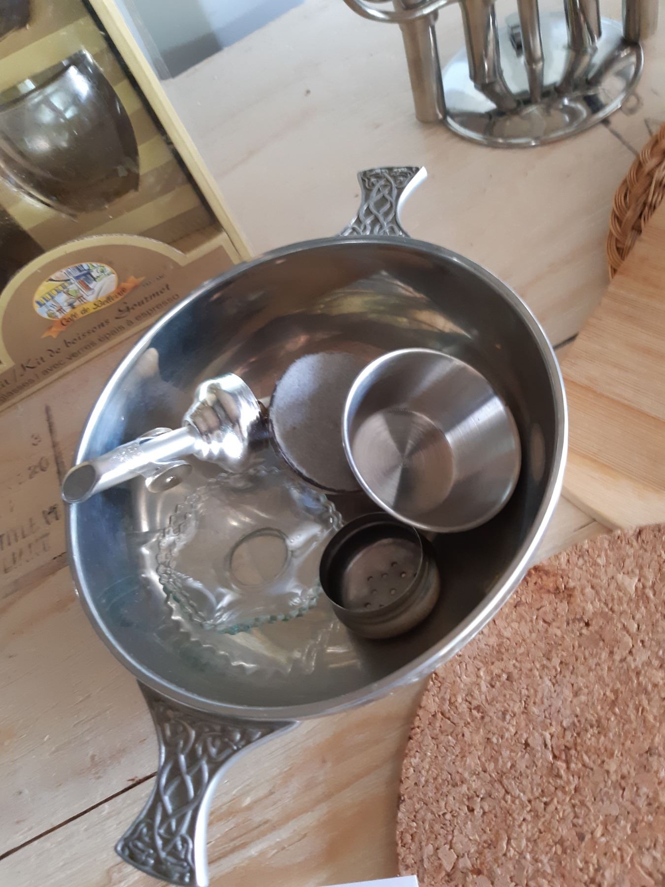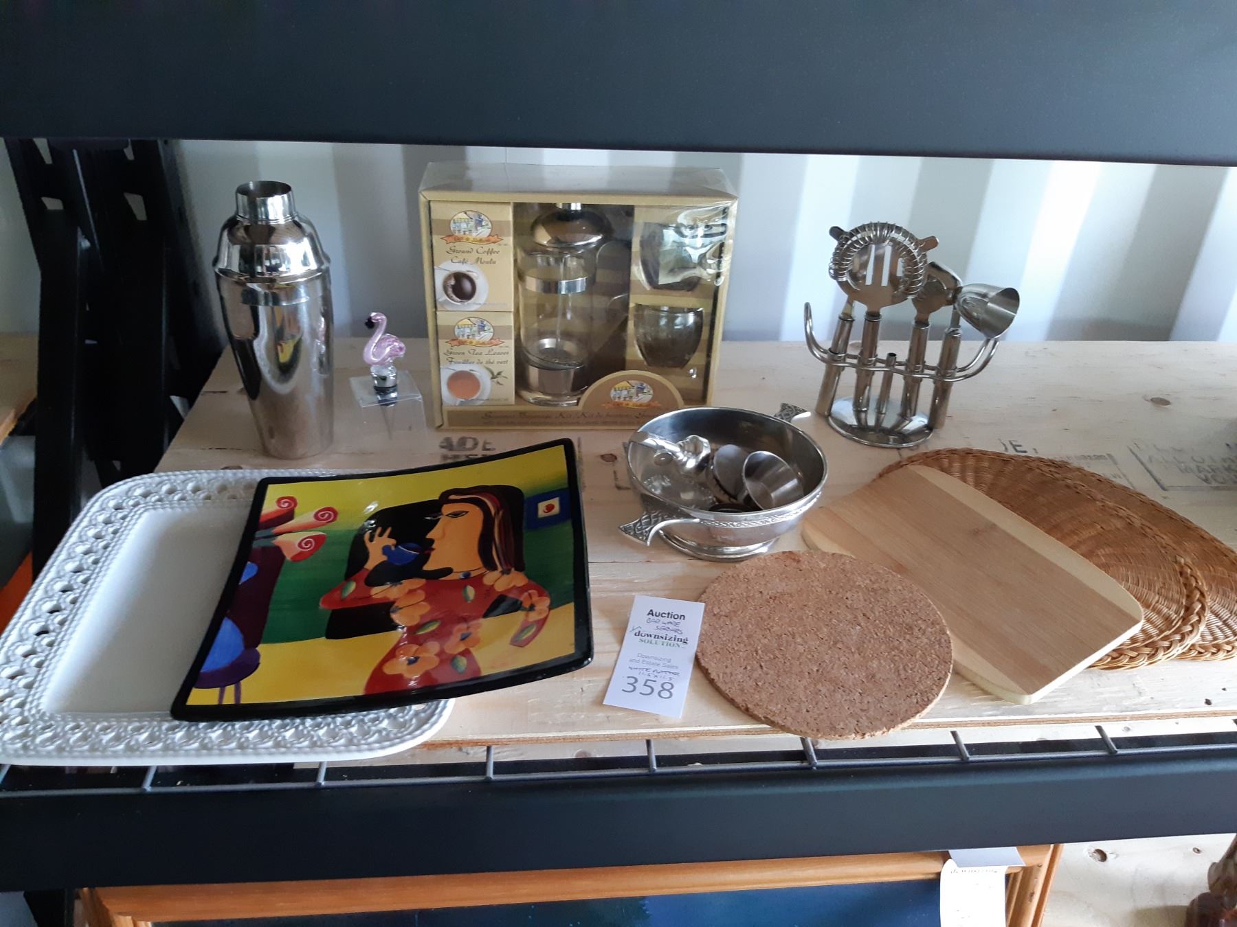 French Press, mats, bar drink shaker missing lid, mixer drink utensils and more. Bring packing materials and pickup at 9 am