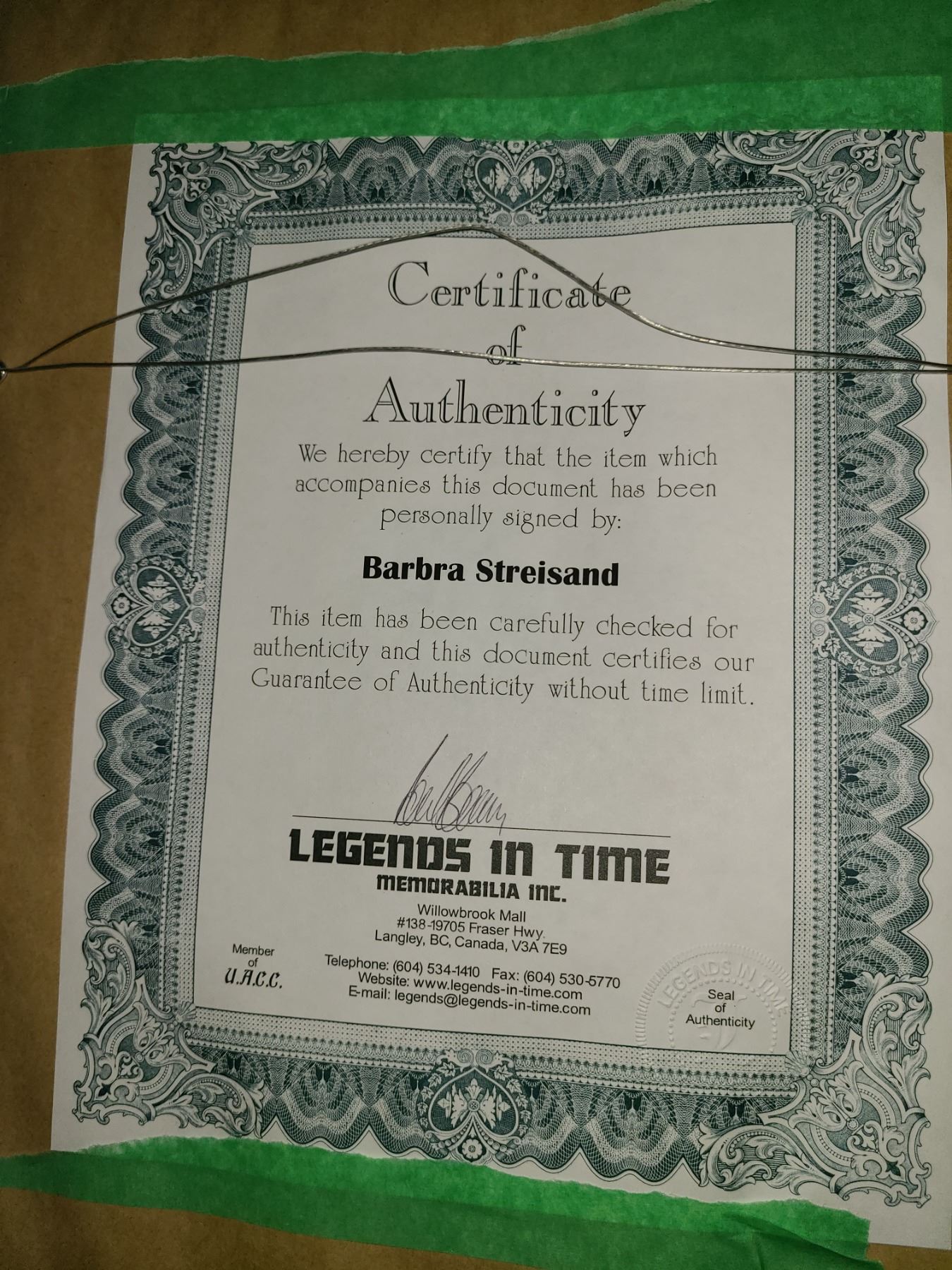 Barbara Streisand, signed with certificate of authenticity. Pickup 9 am.