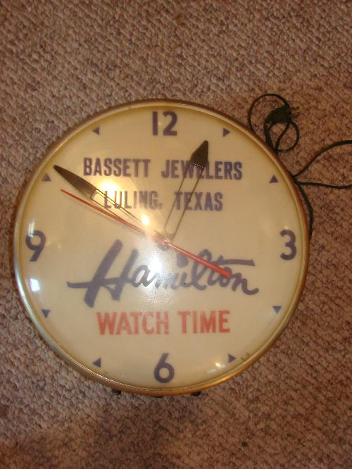 Bassett Jewelers Adv. Clock, Luling Tx.by Hamilton