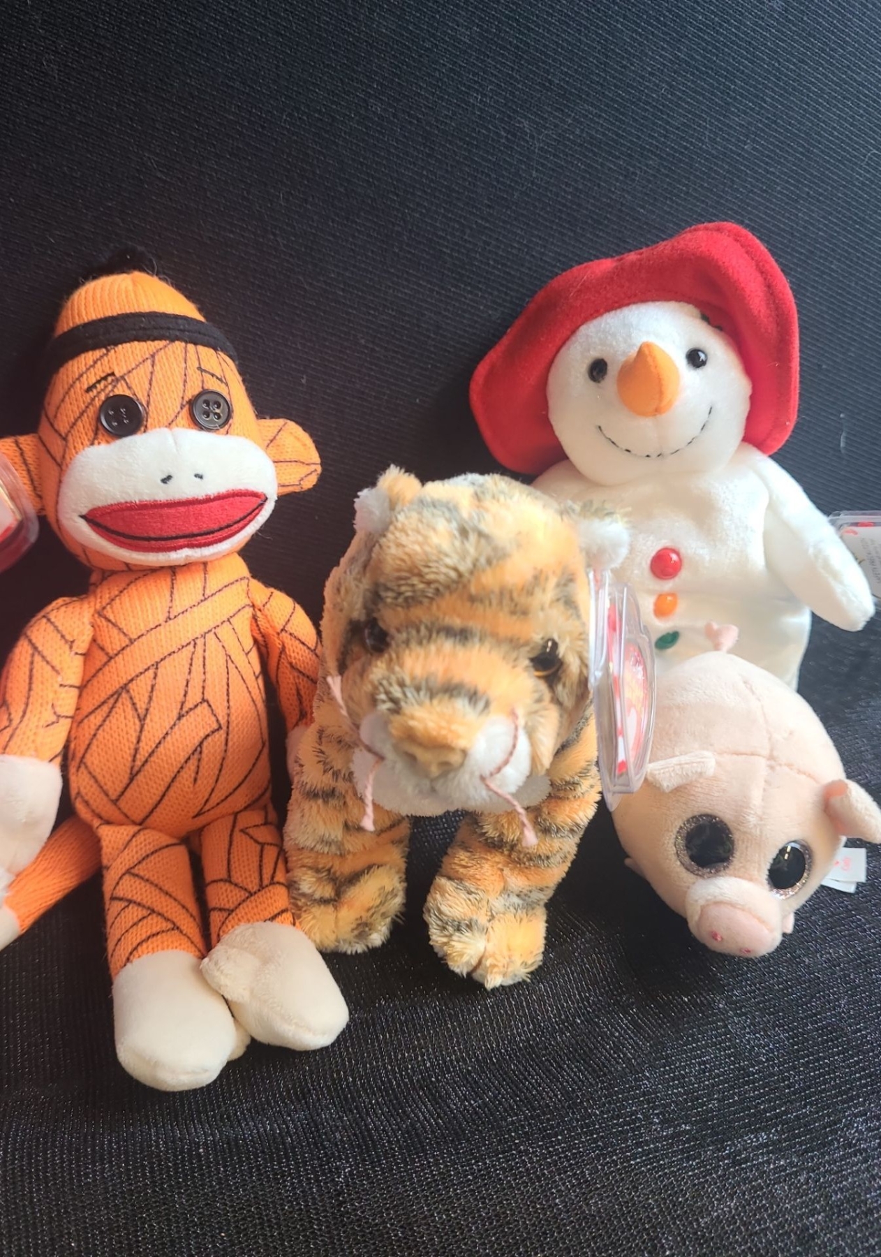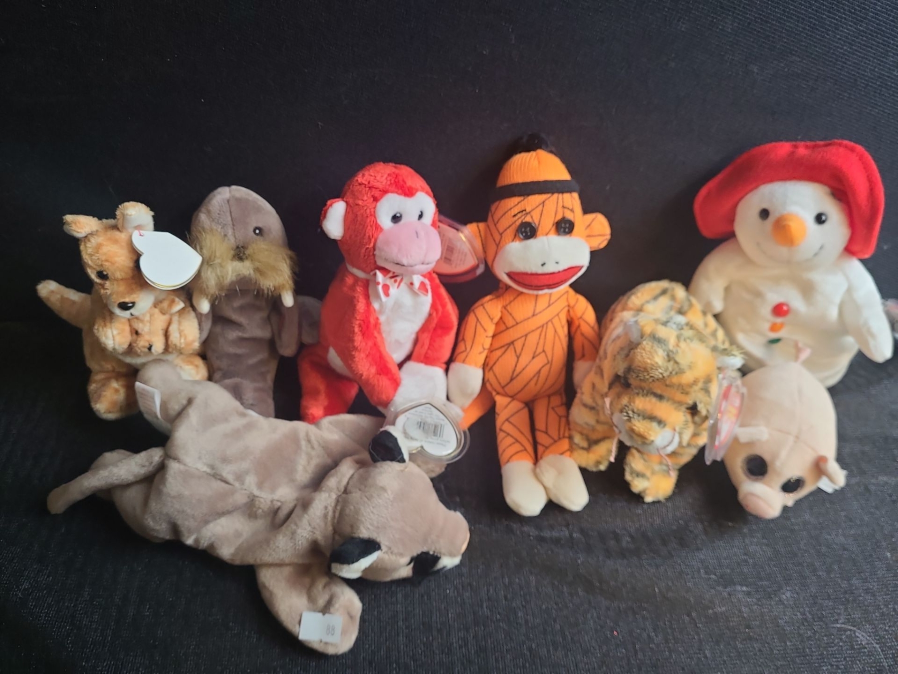 Beanie Babies- Assorted Including: Pouch, Jolly, Sock Monkey Orange Mummy, Chillin and More!