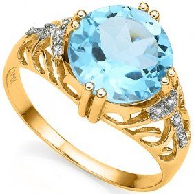 This beautiful ring features 10mm Round Blue Topaz and was set in the 2.45g 10K gold and the 10pcs of the diamond add to the spectacular of the ring.