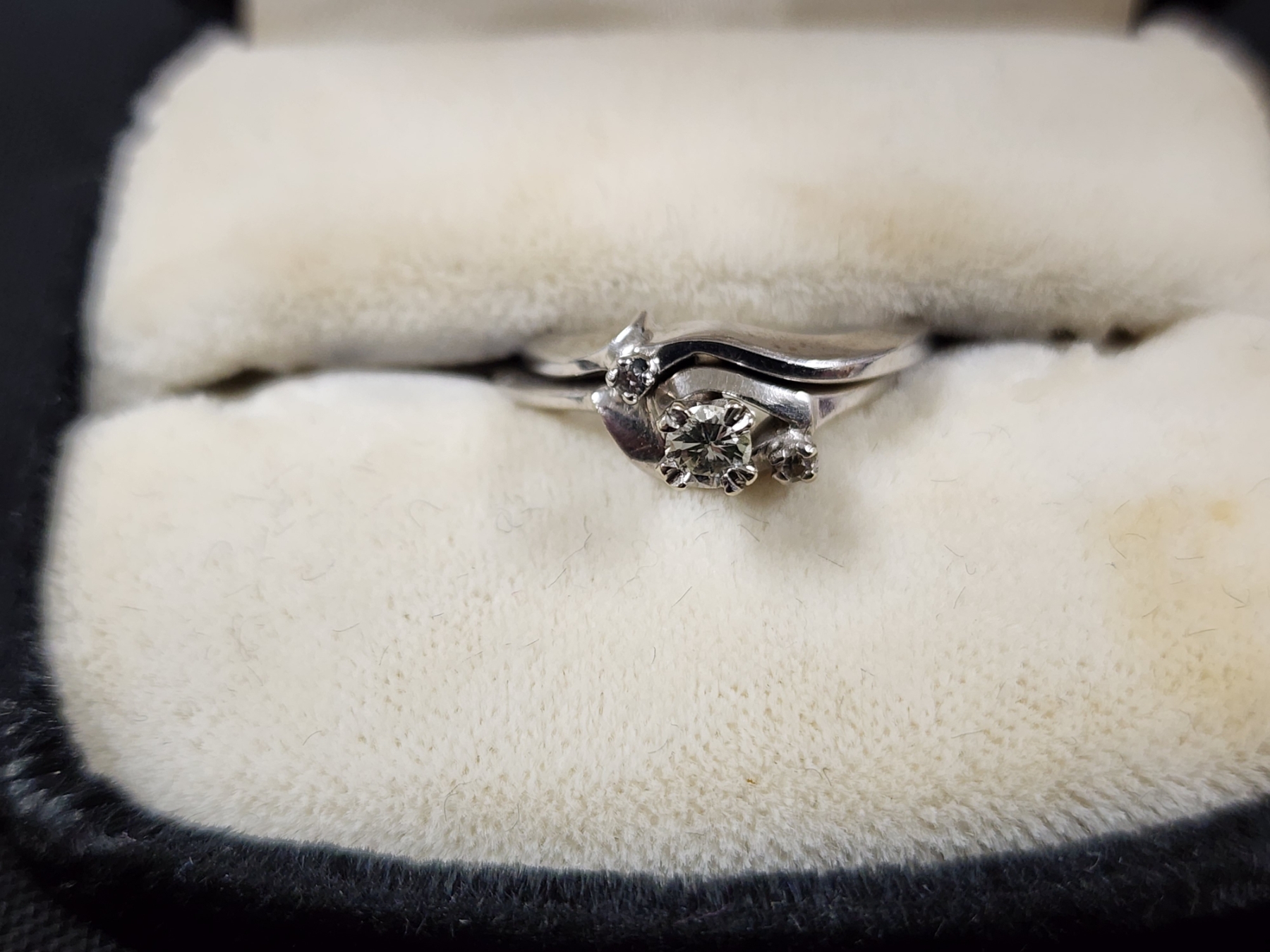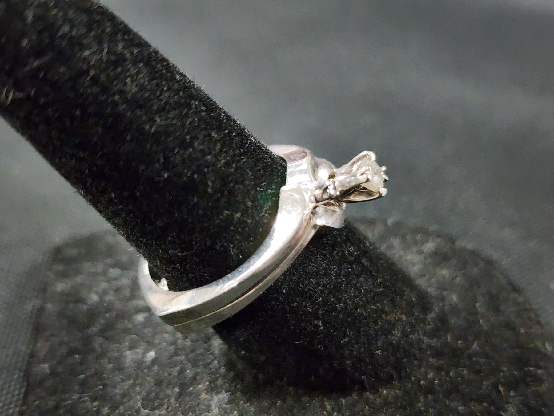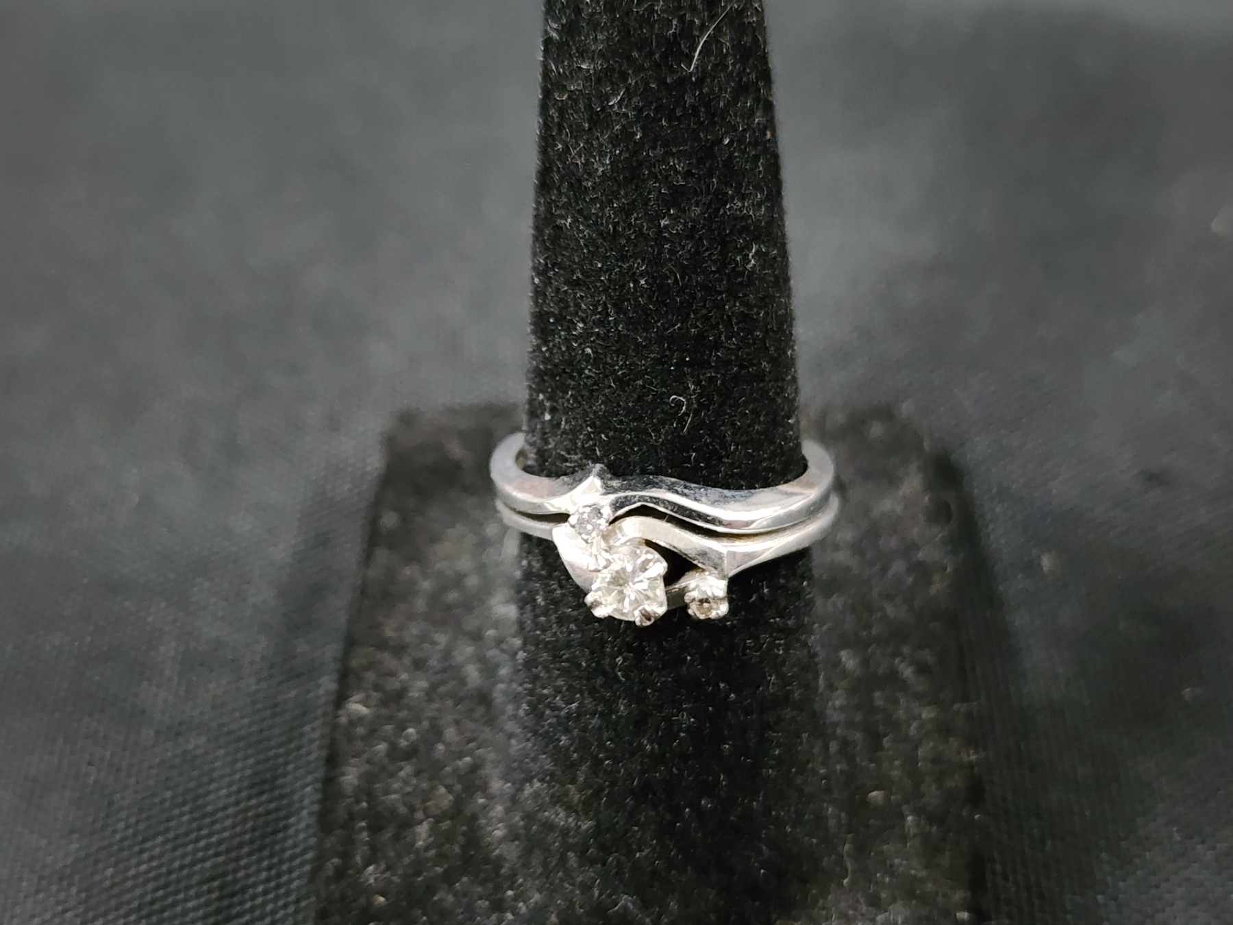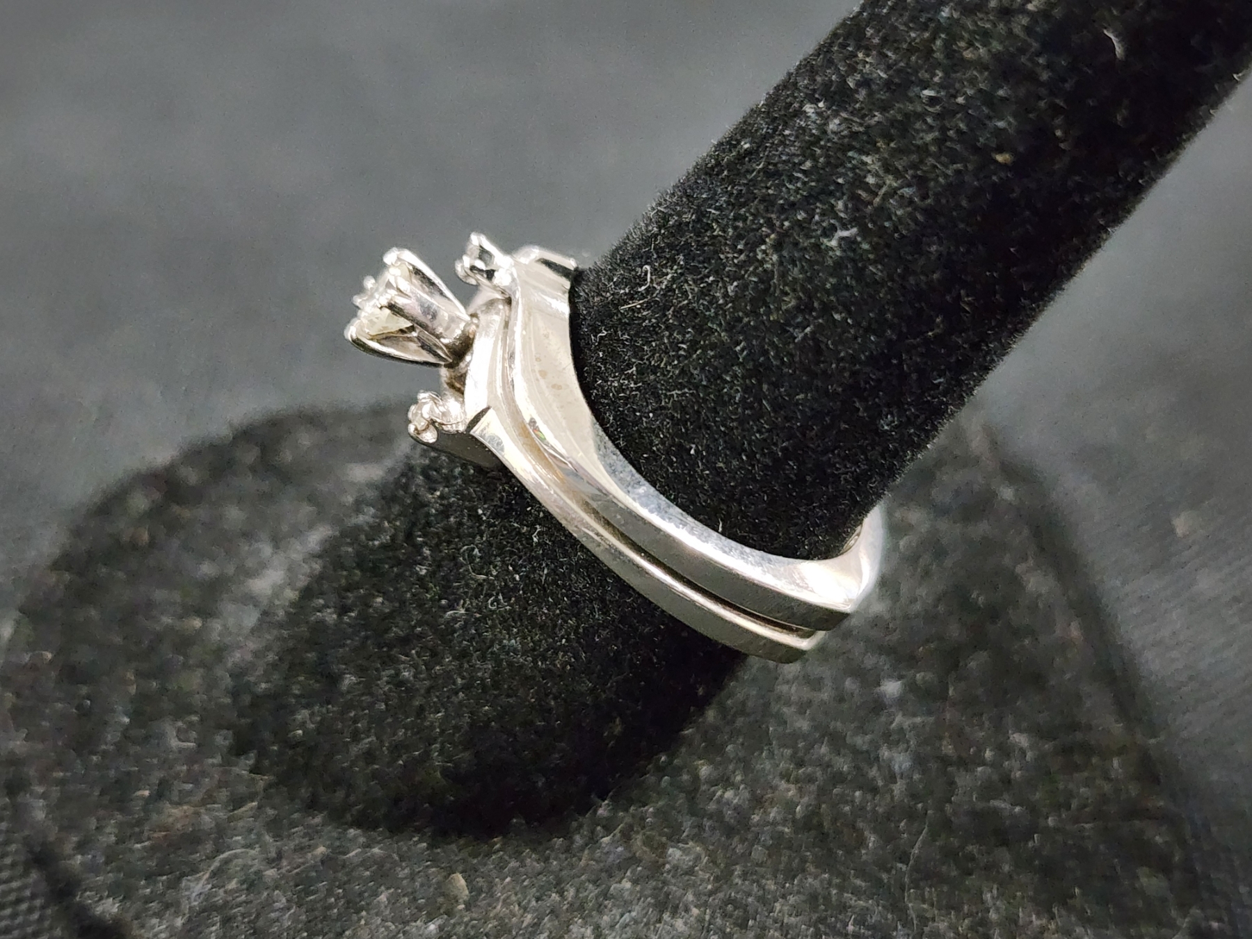 Beautiful 14K White Gold Diamond Ring Set Weighing 5.6 Grams - SIZE 6