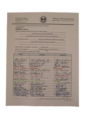 Mrs. Lincoln/Sarafine (Emma Thompson) screen used, 'Official Petition Form' for the Expulsion of Lena Duchannes, signed by many people. Includes an additional page of signatures. Color copied by the production.