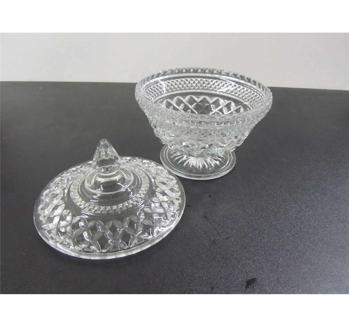 Beautiful Pressed Glass Clear Candy Dish with Ornate Lid