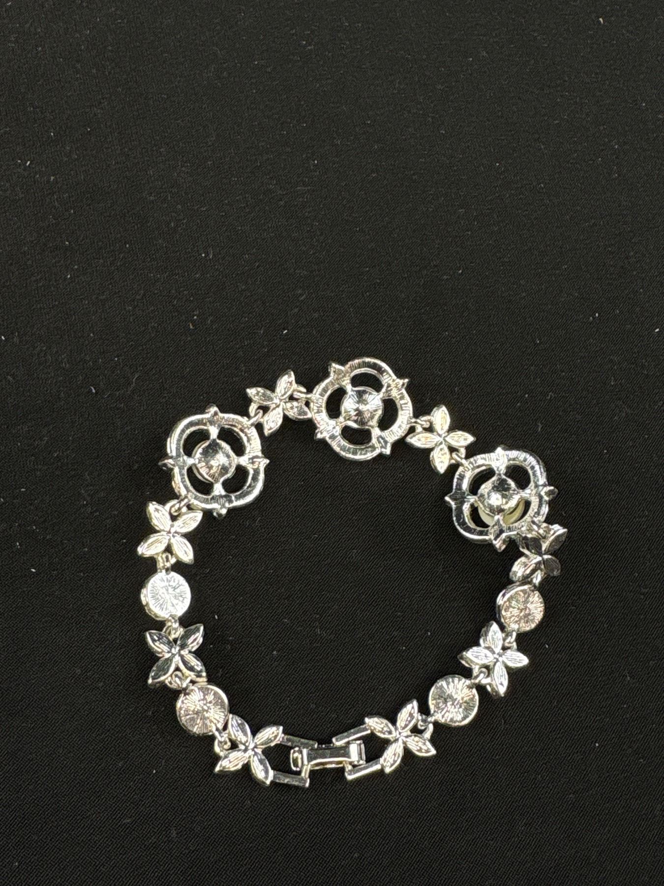 Beautiful Silver Plated w/ Cultured Freshwater Pearls + Rhinestones Bracelet