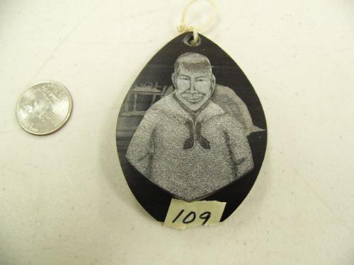 Beautiful scrimshawed portrait of Eskimo man and igloo in background by Oscar Sage (2)