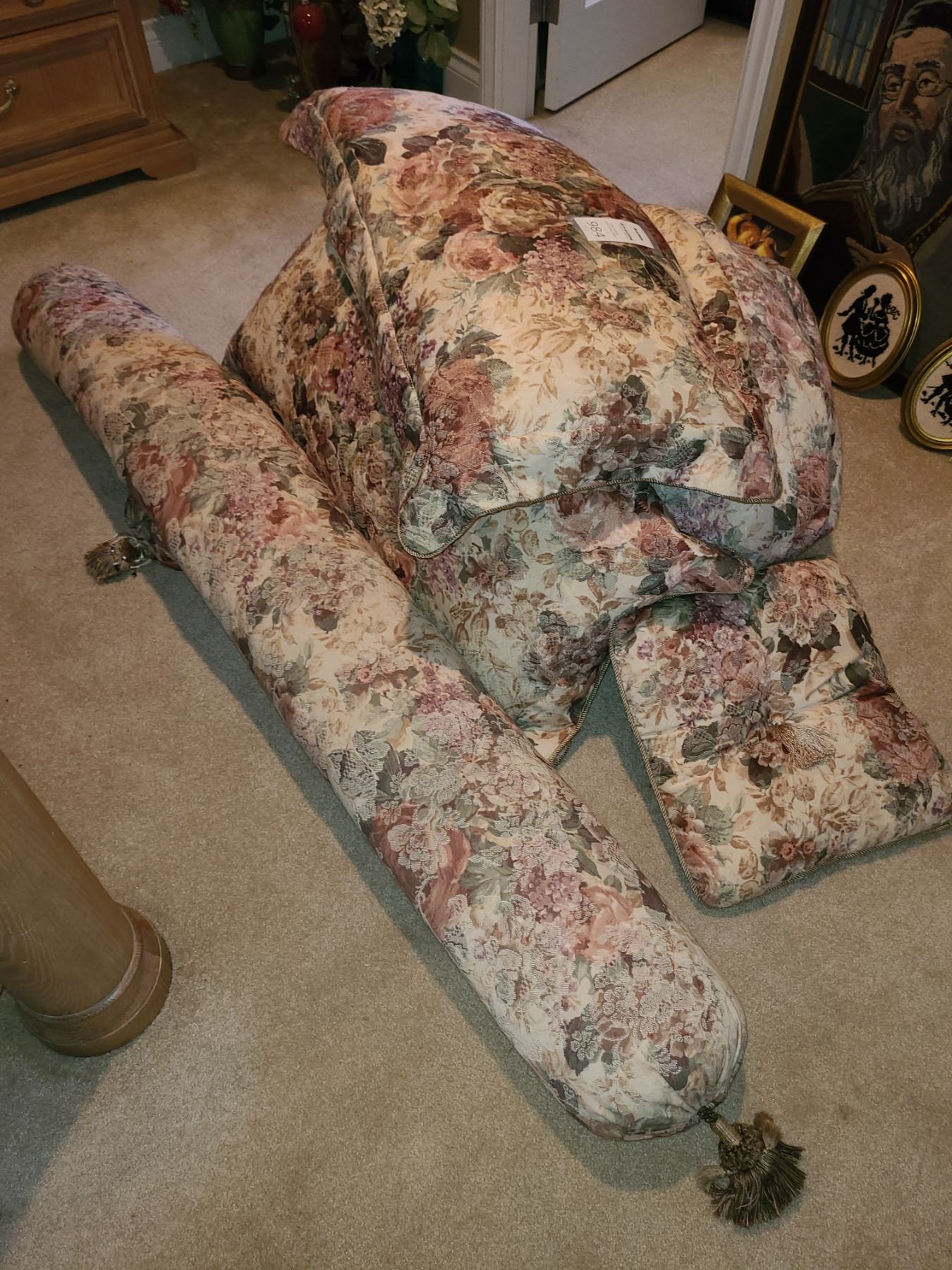 King size pillows, bolster, and covers in lot. Pickup 9 am.