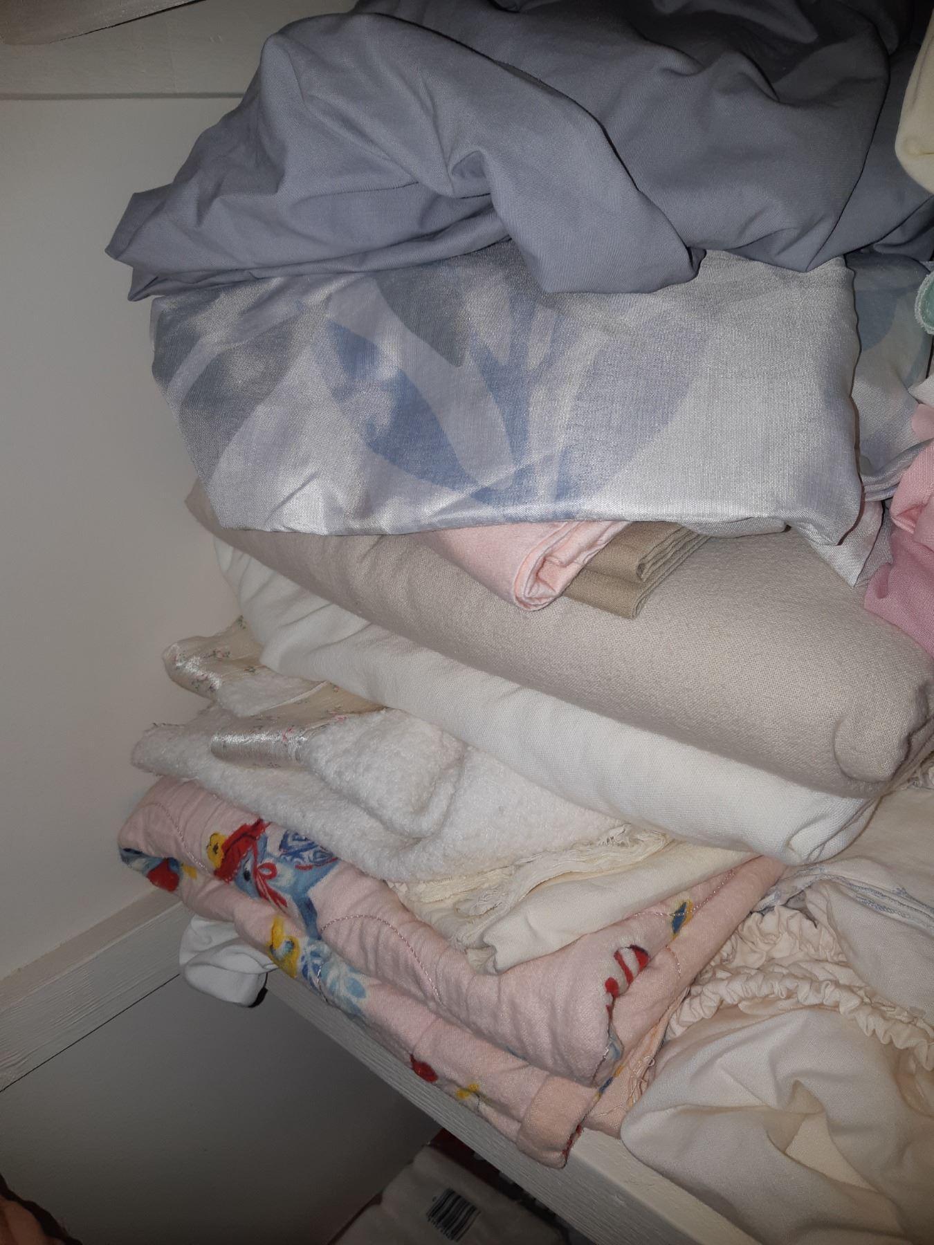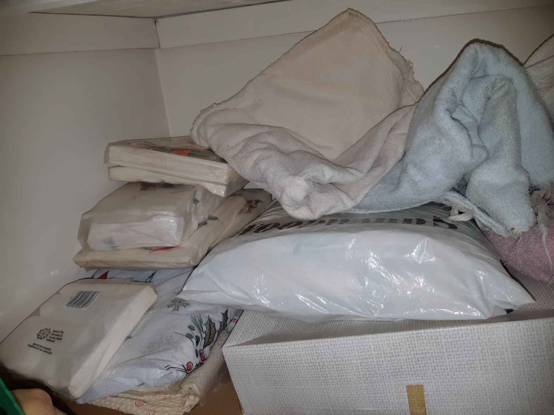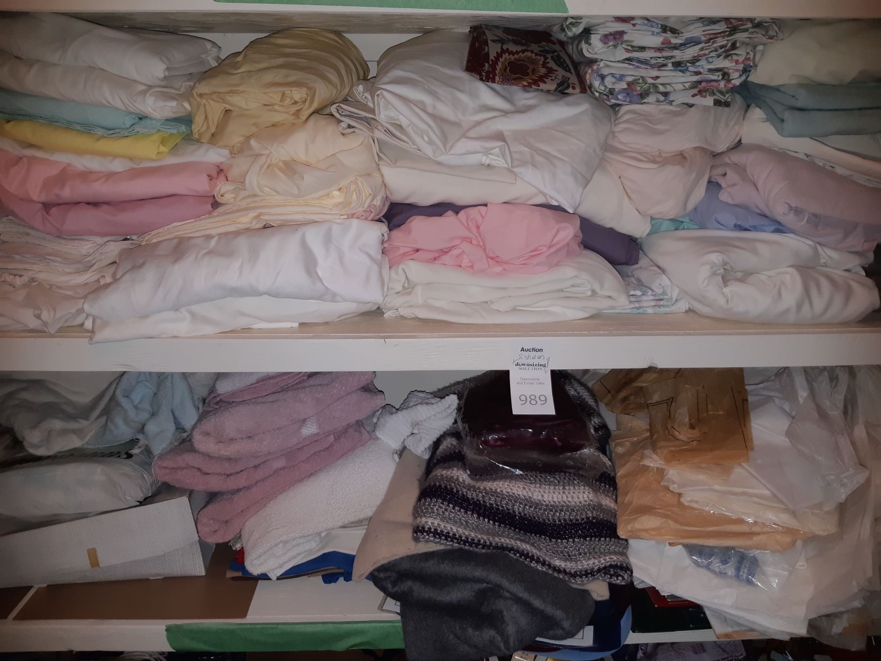 2 shelves, king ,queen,double sheets and bedding, towels, wrapping paper, ribbon, candles, pickup 11am
