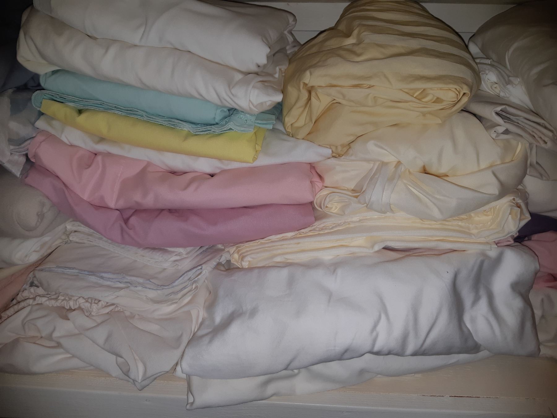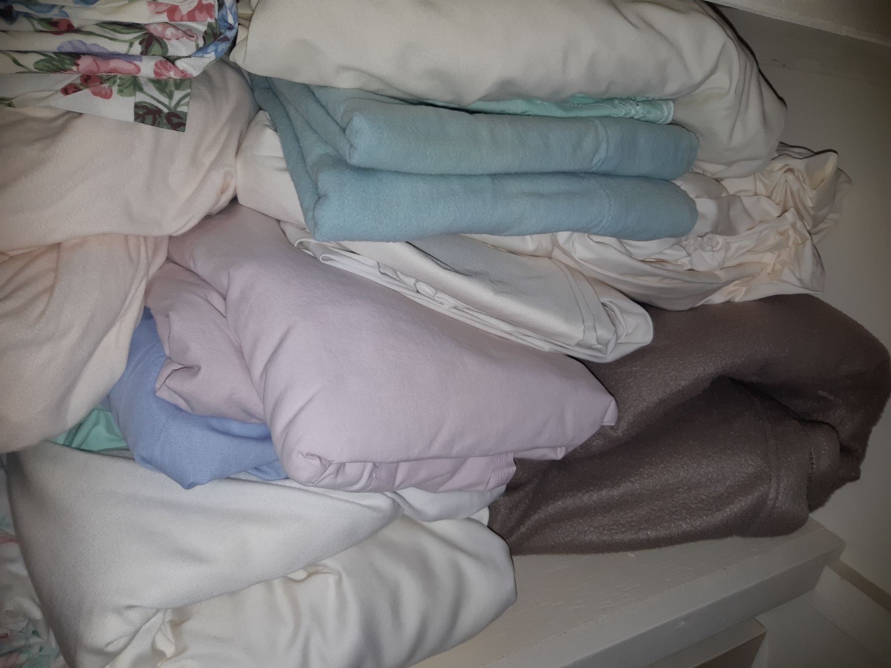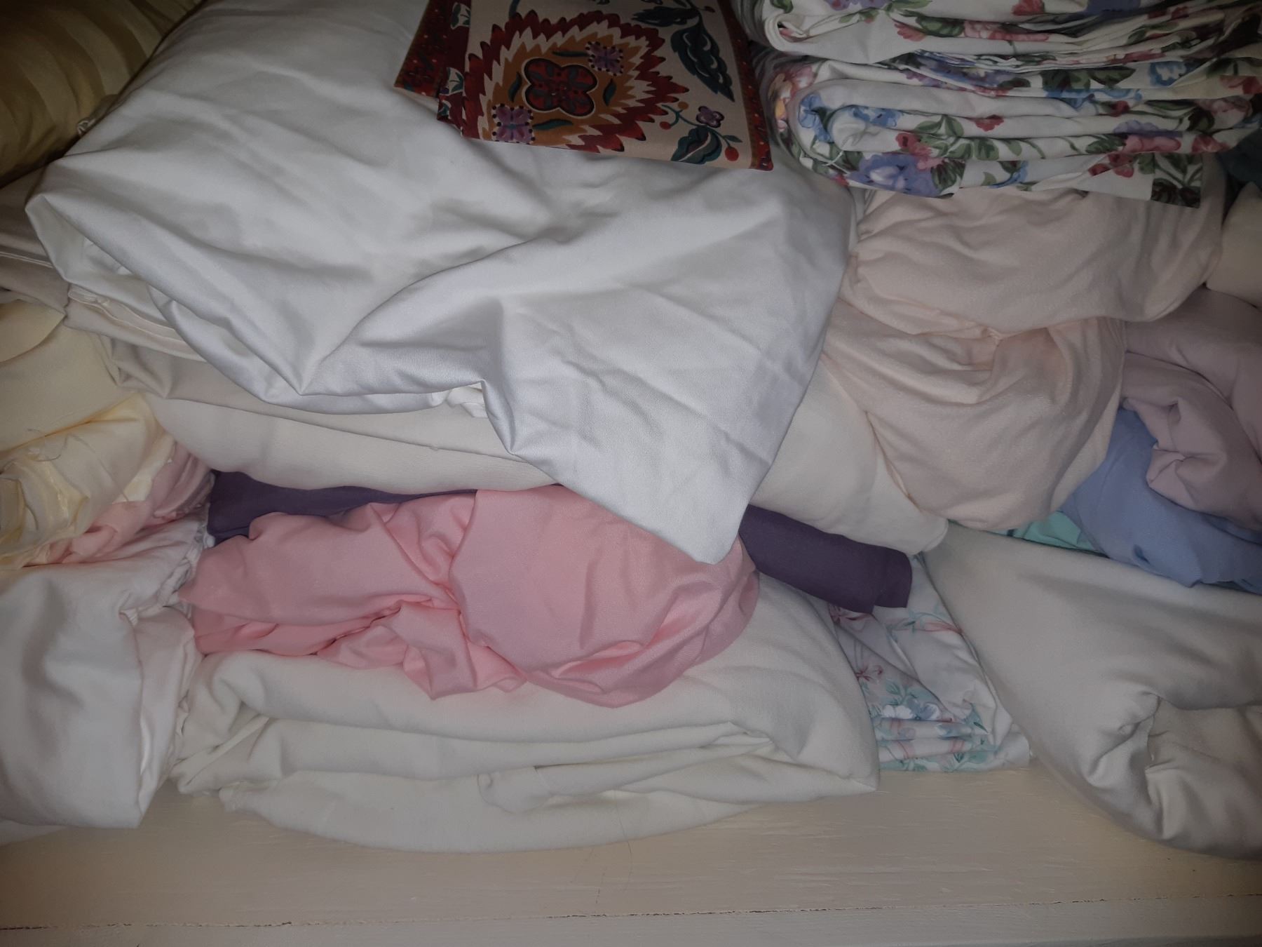 2 shelves, king ,queen,double sheets and bedding, towels, wrapping paper, ribbon, candles, pickup 11am