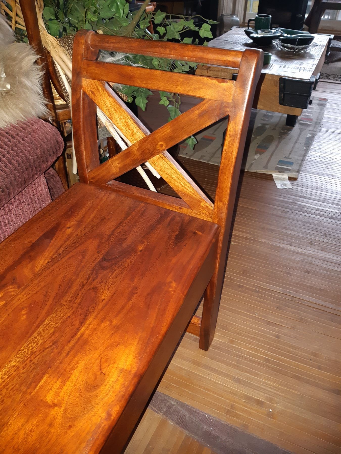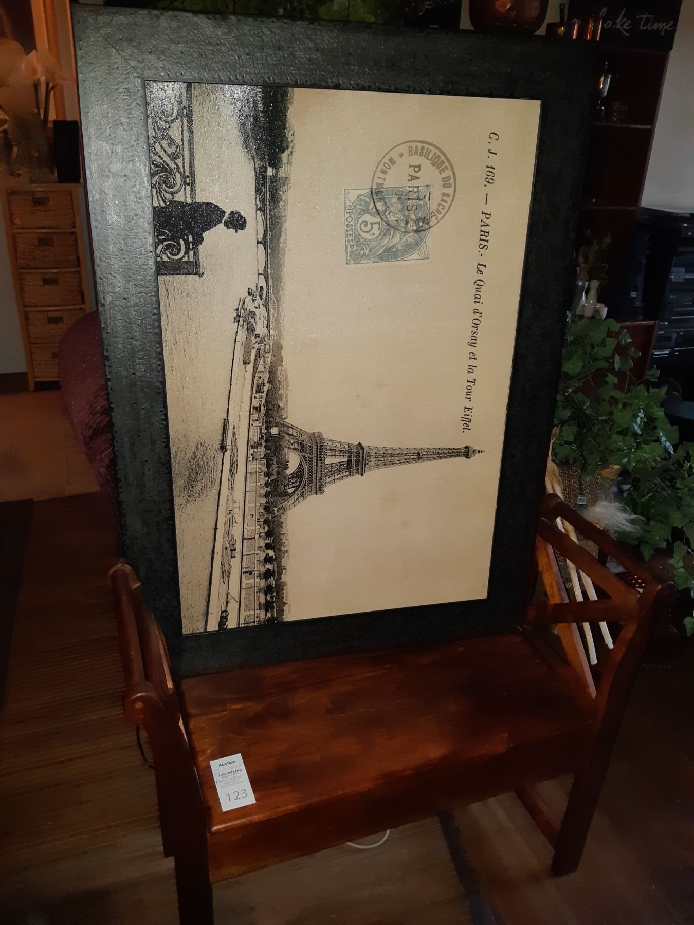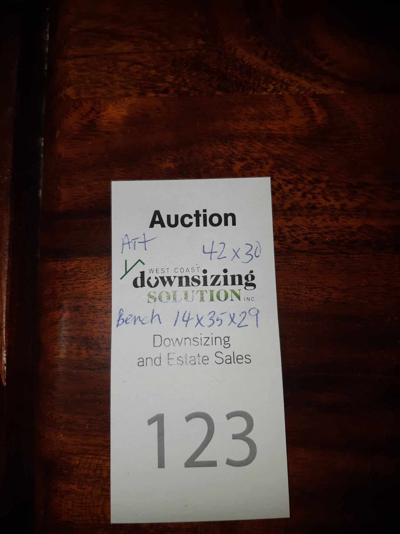 Wood bench 14x35x29 and art 42x30 included. Pickup at 10 am.