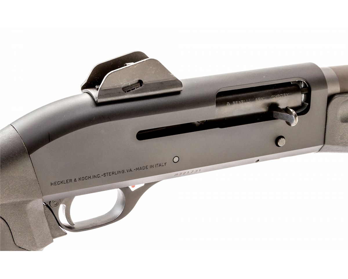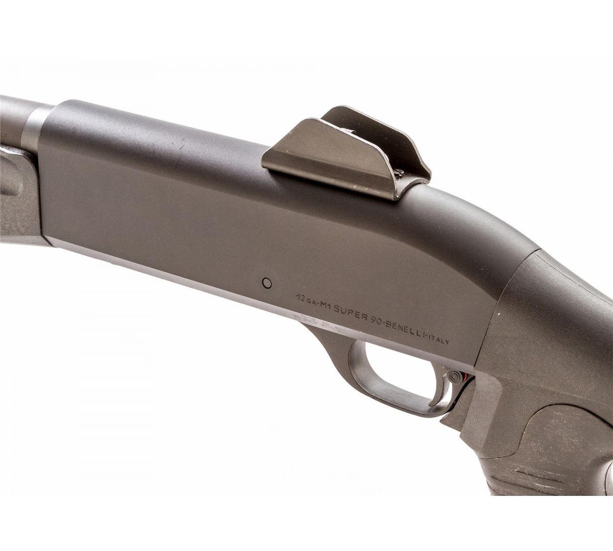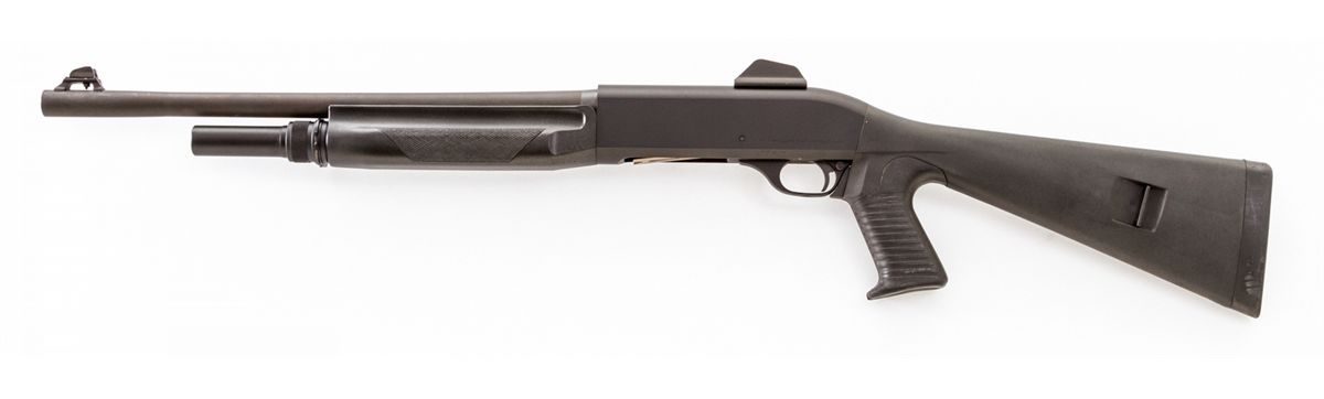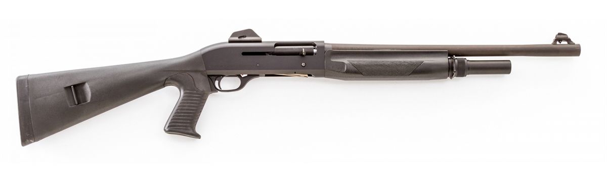 Benelli M1 Super 90 Semi-Automatic Shotgun, #M321731, 12 ga., 18.5'' barrel, matte finish, black plastic stock with checkered forend, ghost ring sights, with three extra chokes and choke tools. Condition is excellent, appearing as new and unfired, in its original box with associated paperwork. Est.: $1,200-$1,800. (Modern)