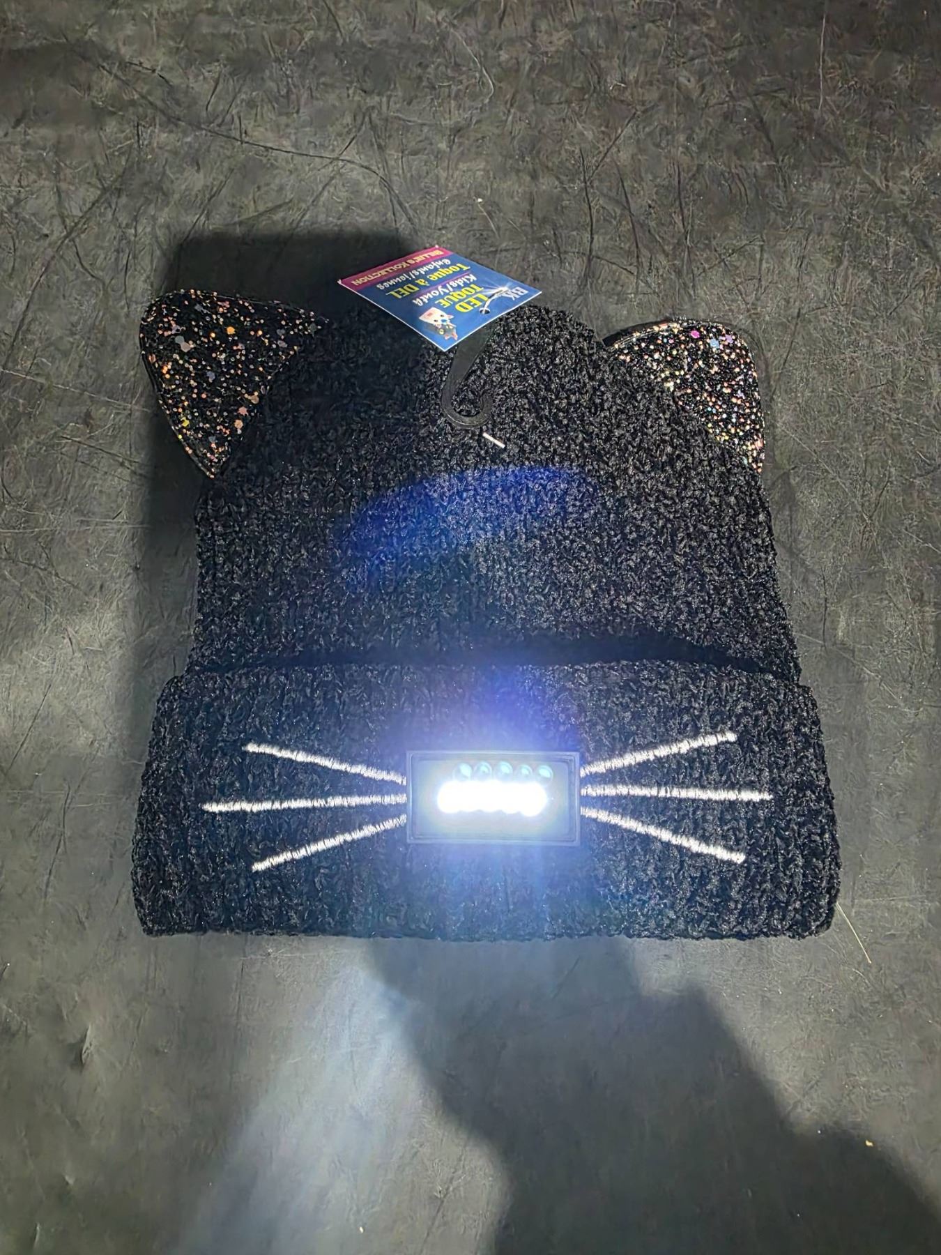 Billie’s Kollection LED Toque with Cat Ears and Embellishments for Kids/Youth