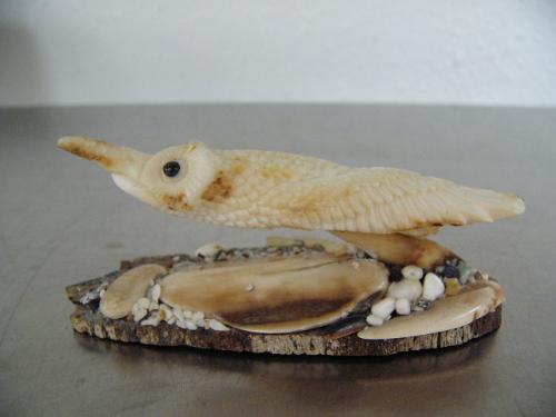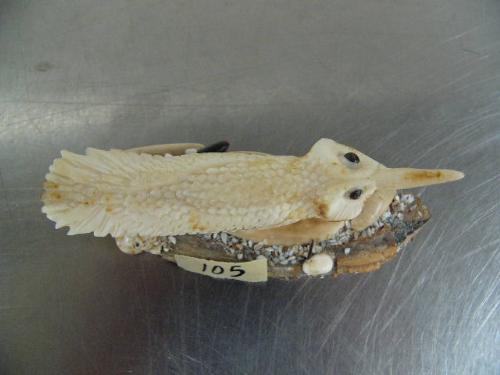 Bird made on ivory on very nice bone base 4" ()