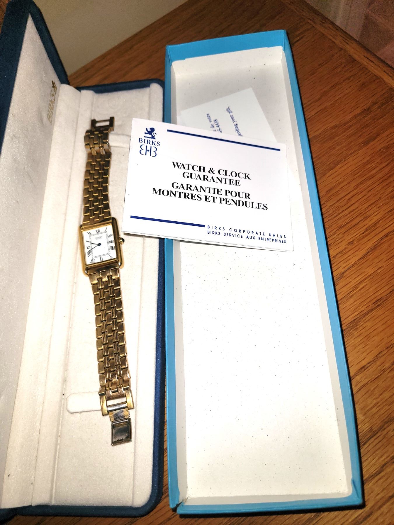 Gold colored men's Birks watch with original case and box. Pickup 9-10am.