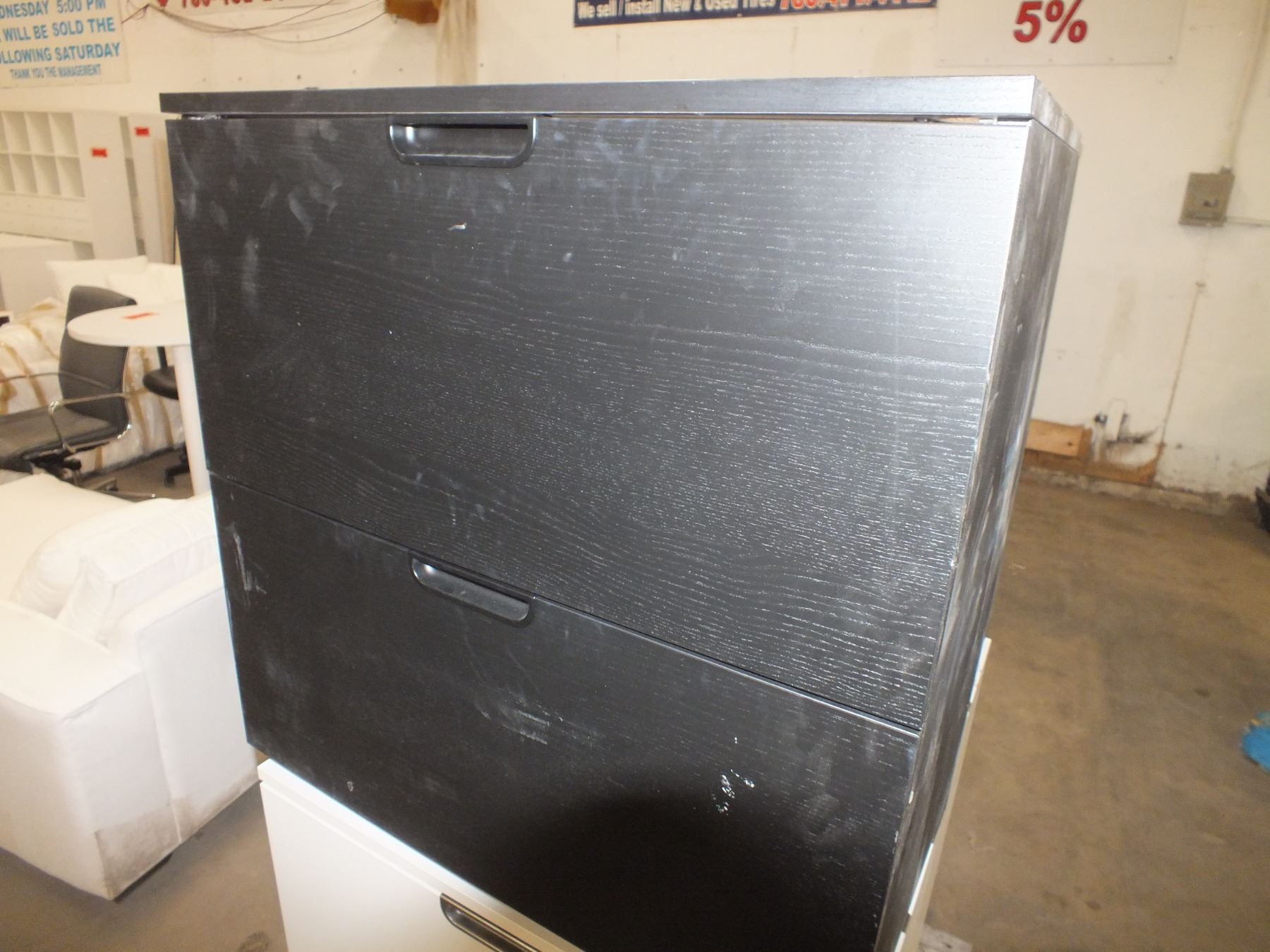 Black 2 Drawer Lateral Filing Cabinet, 31 1/2"l 17 1/2"w 31 1/2"h...show how...like new